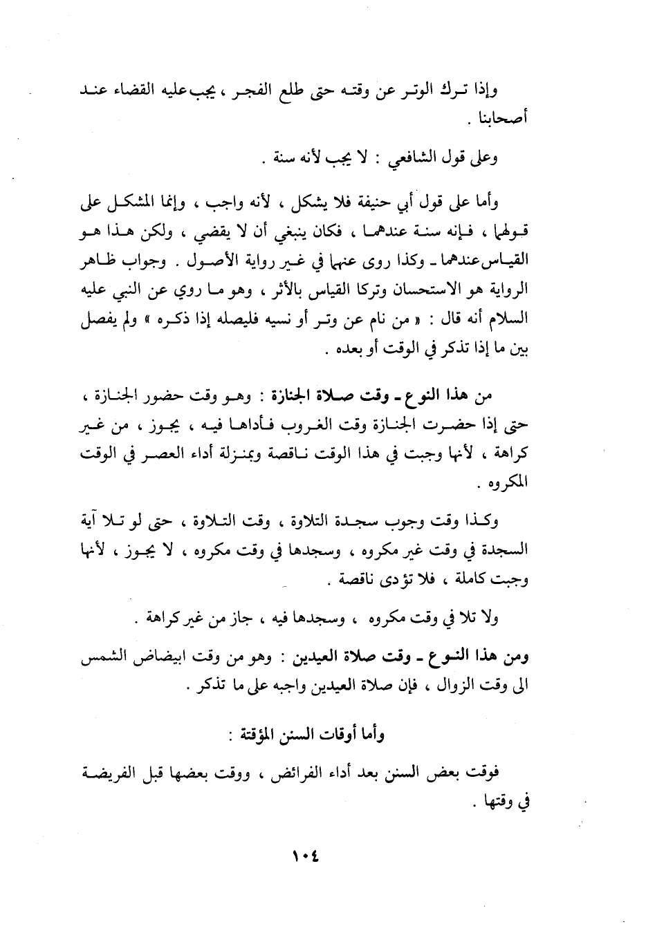 وَمن هَذَا النَّوْع وَقت صَلَاة الْعِيدَيْنِ وَهُوَ من وَقت ابيضاض الشَّمْس إِلَى وَقت الزَّوَال فَإِن صَلَاة الْعِيدَيْنِ وَاجِبَة على مَا تذكر