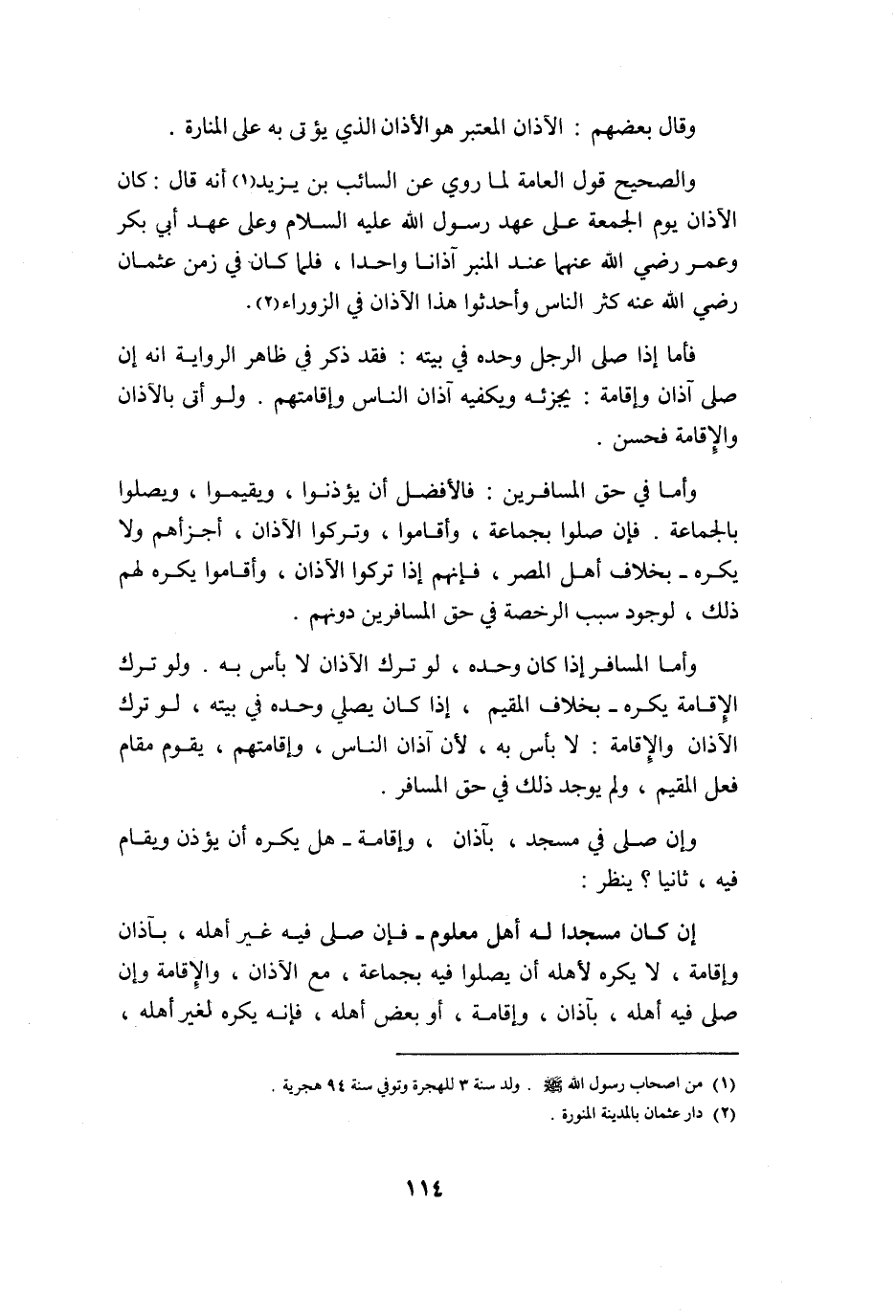 وَالصَّحِيح قَول الْعَامَّة لما رُوِيَ عَن السَّائِب بن يزِيد أَنه قَالَ كَانَ الْأَذَان يَوْم الْجُمُعَة على عهد رَسُول الله عَلَيْهِ السَّلَام وعَلى عهد أبي بكر وَعمر رَضِي الله عَنْهُمَا عِنْد الْمِنْبَر أذانا وَاحِدًا فَلَمَّا كَانَ فِي زمن عُثْمَان رَضِي الله عَنهُ كثر النَّاس وأحدثوا هَذَا الْأَذَان فِي الزَّوْرَاء