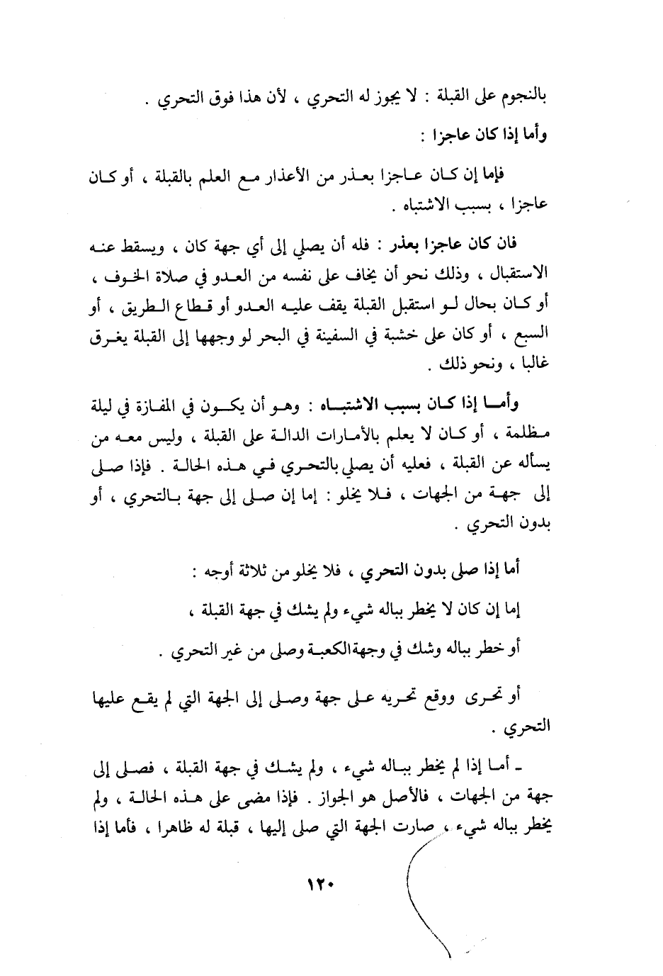 وَأما إِذا كَانَ بِسَبَب الِاشْتِبَاه وَهُوَ أَن يكون فِي الْمَفَازَة فِي لَيْلَة مظْلمَة أَو كَانَ لَا يعلم بالأمارات الدَّالَّة على الْقبْلَة وَلَيْسَ مَعَه من يسْأَله عَن الْقبْلَة فَعَلَيهِ أَن يُصَلِّي بِالتَّحَرِّي فِي هَذِه الْحَالة