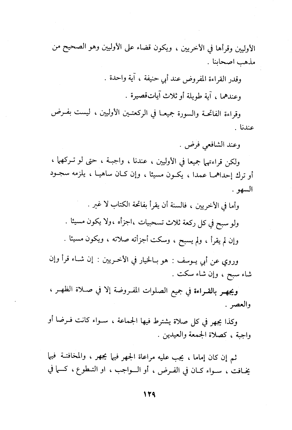 ثمَّ إِن كَانَ إِمَامًا يجب عَلَيْهِ مُرَاعَاة الْجَهْر فِيمَا يجْهر والمخافتة فِيمَا يُخَافت سَوَاء كَانَ فِي الْفَرْض أَو الْوَاجِب أَو التَّطَوُّع كَمَا فِي