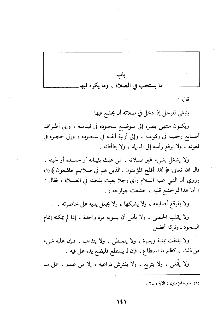 قَالَ الله تَعَالَى {قد أَفْلح الْمُؤْمِنُونَ الَّذين هم فِي صلَاتهم خاشعون}