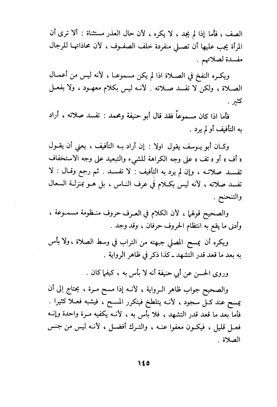 وَكَانَ أَبُو يوسفيقول أَولا إِن أَرَادَ بِهِ التأفف يَعْنِي أَن يَقُول أُفٍّ أَو تف على وَجه الْكَرَاهَة للشَّيْء والتبعيد على وَجه الاستخفاف تفْسد صلَاته وَإِن لم يرد بِهِ التأفف لَا تفْسد