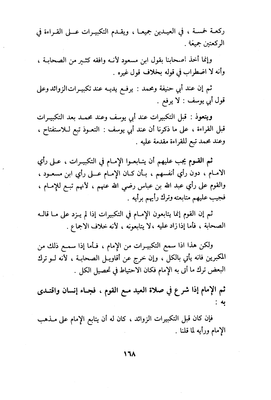 ثمَّ الْقَوْم يجب عَلَيْهِم أَن يتابعوا الإِمَام فِي التَّكْبِيرَات على رَأْي الإِمَام دون رَأْي أنفسهم بِأَن كَانَ الإِمَام على رَأْي ابْن مَسْعُود وَالْقَوْم على رَأْي عبد الله بن عَبَّاس رَضِي الله عَنْهُم لأَنهم تبع للْإِمَام فَيجب عَلَيْهِم مُتَابَعَته وَترك رَأْيهمْ بِرَأْيهِ