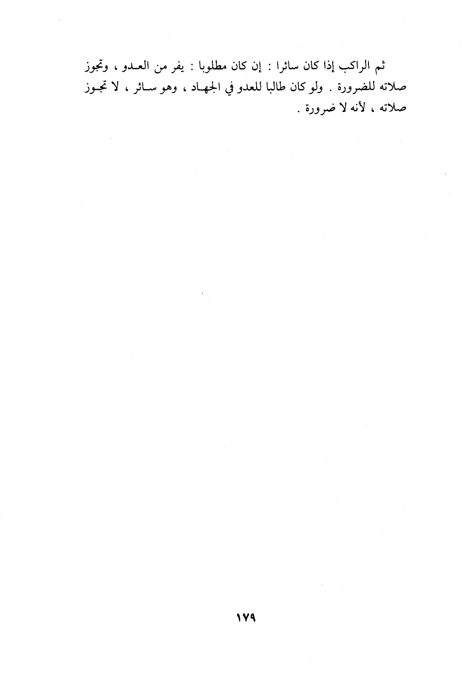 وَلَو كَانَ طَالبا لِلْعَدو فِي الْجِهَاد وَهُوَ سَائِر لَا تجوز صلَاته لِأَنَّهُ لَا ضَرُورَة