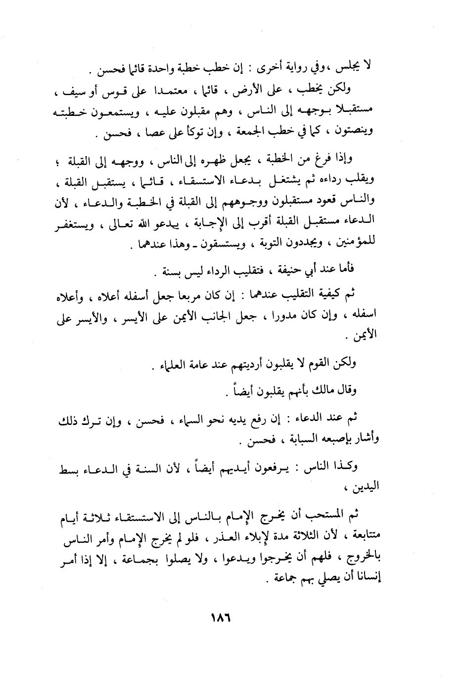 فَأَما عِنْد أبي حنيفَة فتقليب الرِّدَاء لَيْسَ بِسنة