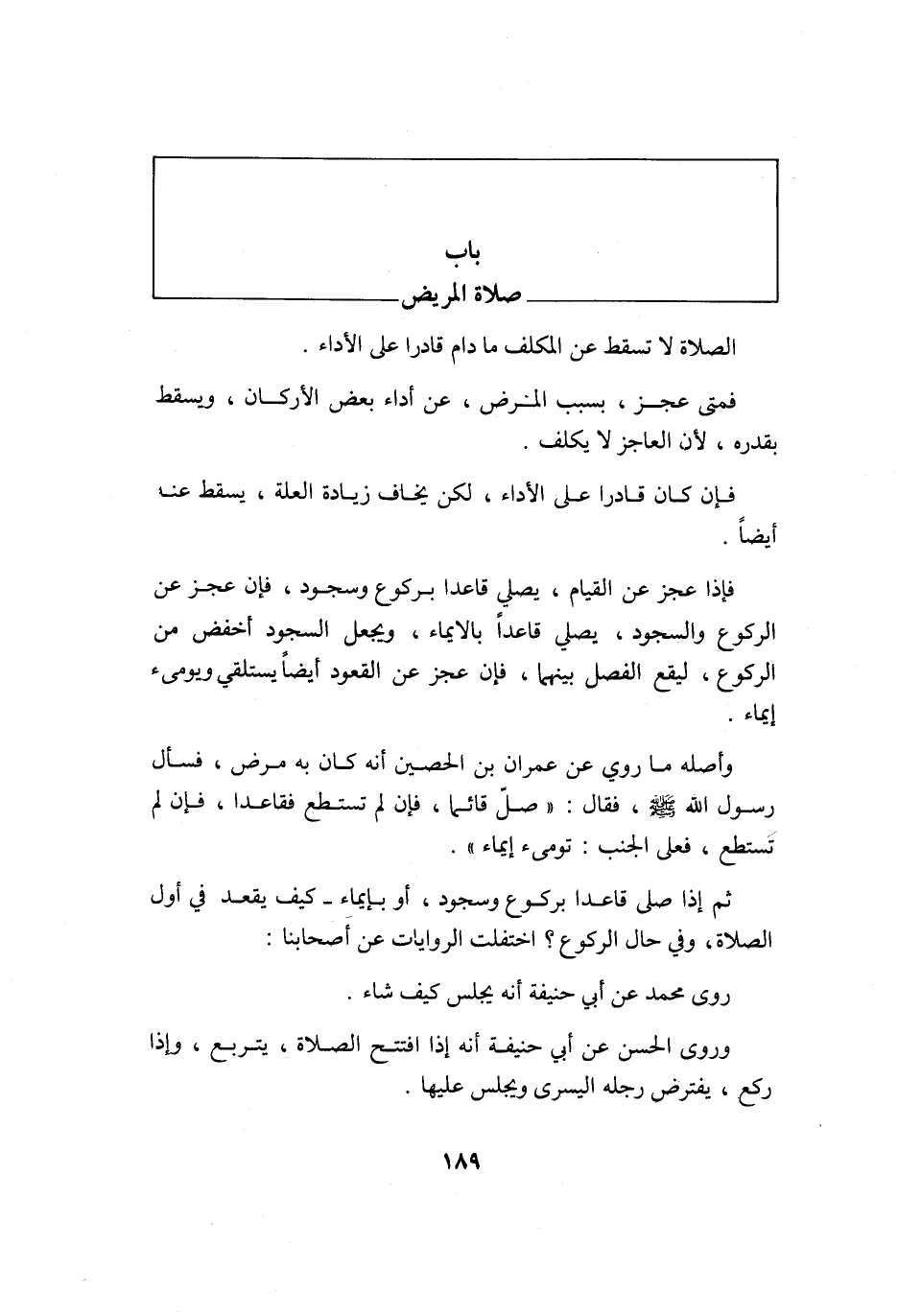 وَأَصله مَا رُوِيَ عَن عمرَان بن الْحصين أَنه كَانَ بِهِ مرض فَسَأَلَ رَسُول الله صلى الله عَلَيْهِ وَسلم فَقَالَ صل قَائِما فَإِن لم تستطع فقاعدا فَإِن لم تستطع فعلى الْجنب تومىء إِيمَاء