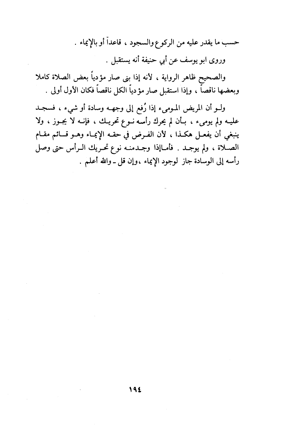 وَلَو أَن الْمَرِيض المومىء إِذا رفع إِلَى وَجهه وسَادَة أَو شَيْء فَسجدَ عَلَيْهِ وَلم يومىء بِأَن لم يُحَرك رَأسه نوع تَحْرِيك فَإِنَّهُ لَا يجوز وَلَا يَنْبَغِي أَن يفعل هَكَذَا لِأَن الْفَرْض فِي حَقه الْإِيمَاء وَهُوَ قَائِم مقَام الصَّلَاة وَلم يُوجد