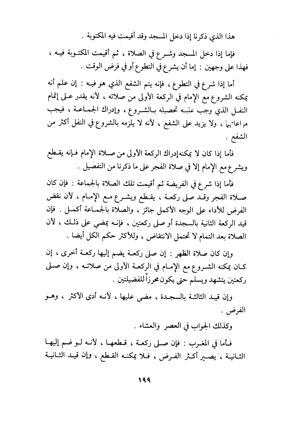 فَأَما إِذا كَانَ لَا يُمكنهُ إِدْرَاك الرَّكْعَة الأولى من صَلَاة الإِمَام فَإِنَّهُ يقطع ويشرع مَعَ الإِمَام إِلَّا فِي صَلَاة الْفجْر على مَا ذكرنَا من التَّفْصِيل