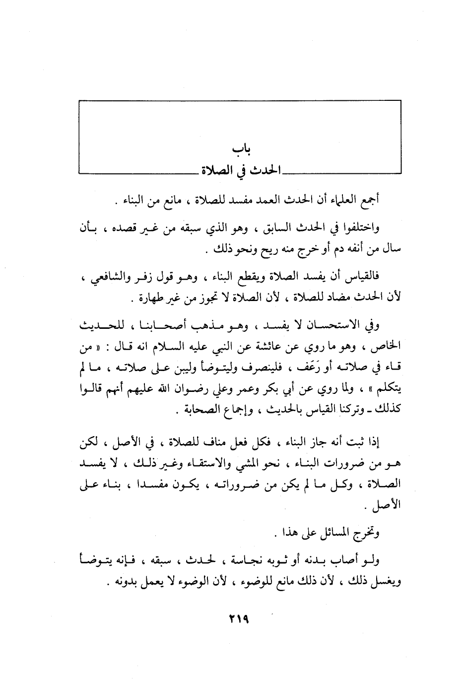 فِي الصَّلَاة أجمع الْعلمَاء أَن الْحَدث الْعمد مُفسد للصَّلَاة مَانع من الْبناء