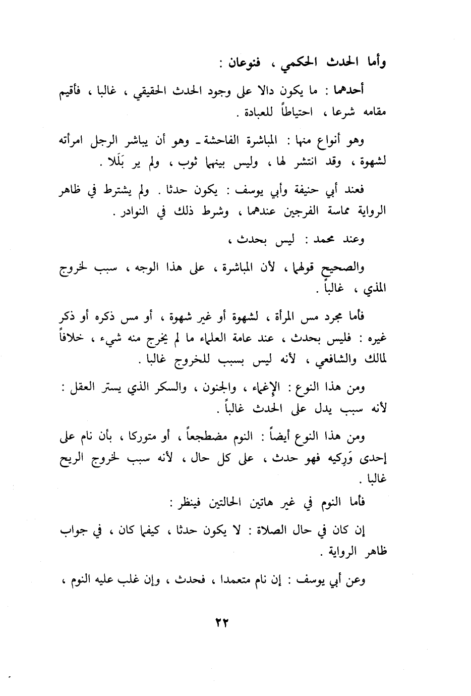 وَأما الْحَدث الْحكمِي نَوْعَانِ أَحدهمَا مَا يكون دَالا على وجود الْحَدث الْحَقِيقِيّ غَالِبا فأقيم مقَامه شرعا احْتِيَاطًا لِلْعِبَادَةِ