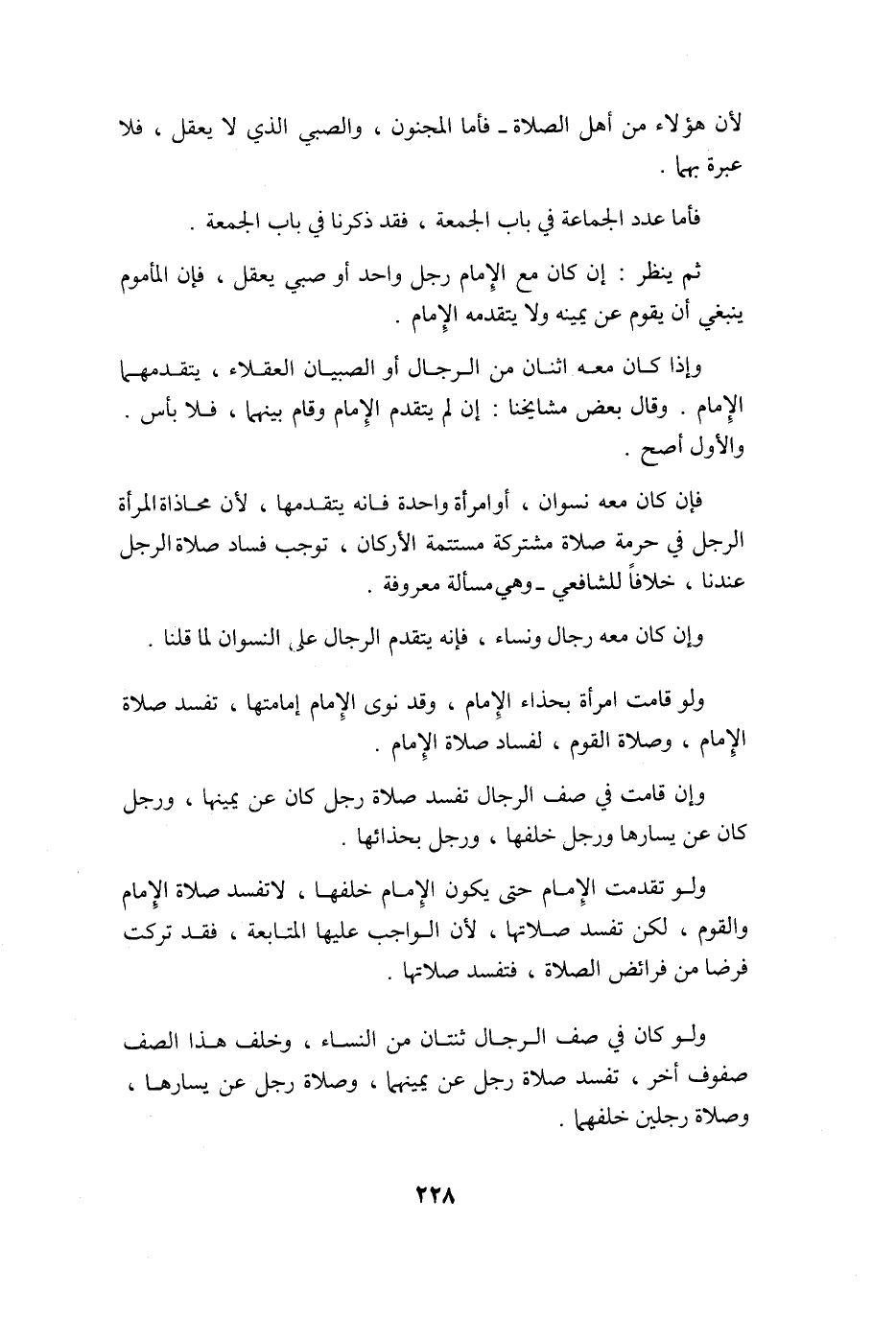 فَإِن كَانَ مَعَه نسوان أَو امْرَأَة وَاحِدَة فَإِنَّهُ يتقدمها لِأَن محاذاة الْمَرْأَة الرجل فِي حُرْمَة صَلَاة مُشْتَركَة مستتمة الْأَركان توجب فَسَاد صَلَاة الرجل عندنَا خلافًا للشَّافِعِيّ وَهِي مَسْأَلَة مَعْرُوفَة