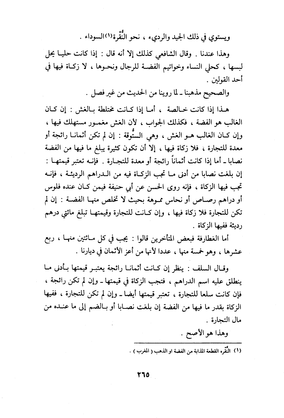 هَذَا إِذا كَانَت خَالِصَة أما إِذا كَانَت مختلطة بالغش إِن كَانَ الْغَالِب هُوَ الْفضة فَكَذَلِك الْجَواب لِأَن الْغِشّ مغمور مستهلك فِيهَا وَإِن كَانَ الْغَالِب هُوَ الْغِشّ وَهِي الستوقة إِن لم تكن أثمانا رائجة أَو معدة للتِّجَارَة فَلَا زَكَاة فِيهَا إِلَّا أَن تكون كَثِيرَة يبلغ مَا فِيهَا من الْفضة نِصَابا