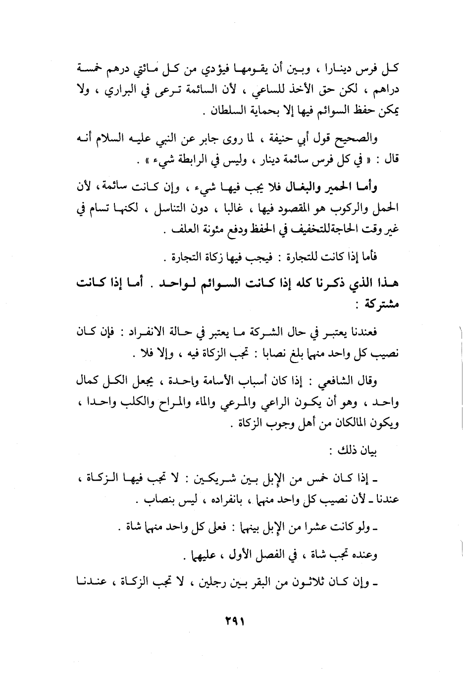 هَذَا الَّذِي ذكرنَا كُله إِذا كَانَت السوائم لوَاحِد أما إِذا كَانَت مُشْتَركَة فعندنا يعْتَبر فِي حَال الشّركَة مَا يعْتَبر فِي حَالَة الِانْفِرَاد فَإِن كَانَ نصيب كل وَاحِد مِنْهُمَا بلغ نِصَابا تجب الزَّكَاة فِيهِ وَإِلَّا فَلَا