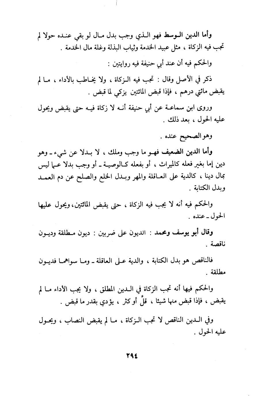 وَقَالَ أَبُو يُوسُف وَمُحَمّد الدُّيُون على ضَرْبَيْنِ دُيُون مُطلقَة وديون نَاقِصَة