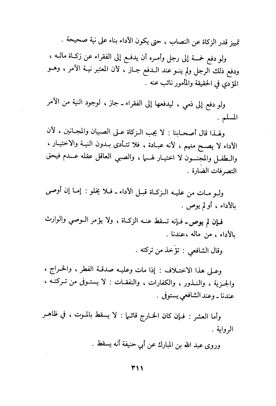 وروى عبد الله بن الْمُبَارك عَن أبي حنيفَة أَنه يسْقط