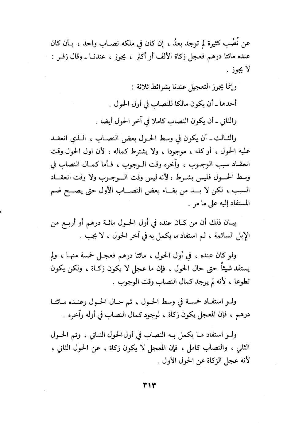 وَإِنَّمَا يجوز التَّعْجِيل عندنَا بشرائط ثَلَاثَة أَحدهَا أَن يكون مَالِكًا للنصاب فِي أول الْحول