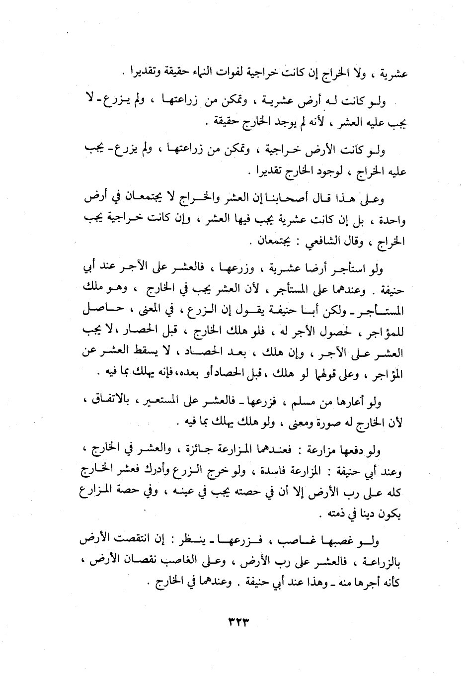 وعَلى هَذَا قَالَ أَصْحَابنَا إِن الْعشْر وَالْخَرَاج لَا يَجْتَمِعَانِ فِي أَرض وَاحِدَة بل إِن كَانَت عشرِيَّة يجب فِيهَا الْعشْر وَإِن كَانَت خَرَاجِيَّة يجب الْخراج وَقَالَ الشَّافِعِي يَجْتَمِعَانِ