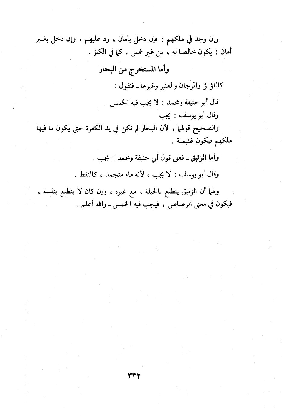 وَأما الْمُسْتَخْرج من الْبحار كَاللُّؤْلُؤِ والمرجان والعنبر وَغَيرهَا فَنَقُول قَالَ أَبُو حنيفَة وَمُحَمّد لَا يجب فِيهِ الْخمس
