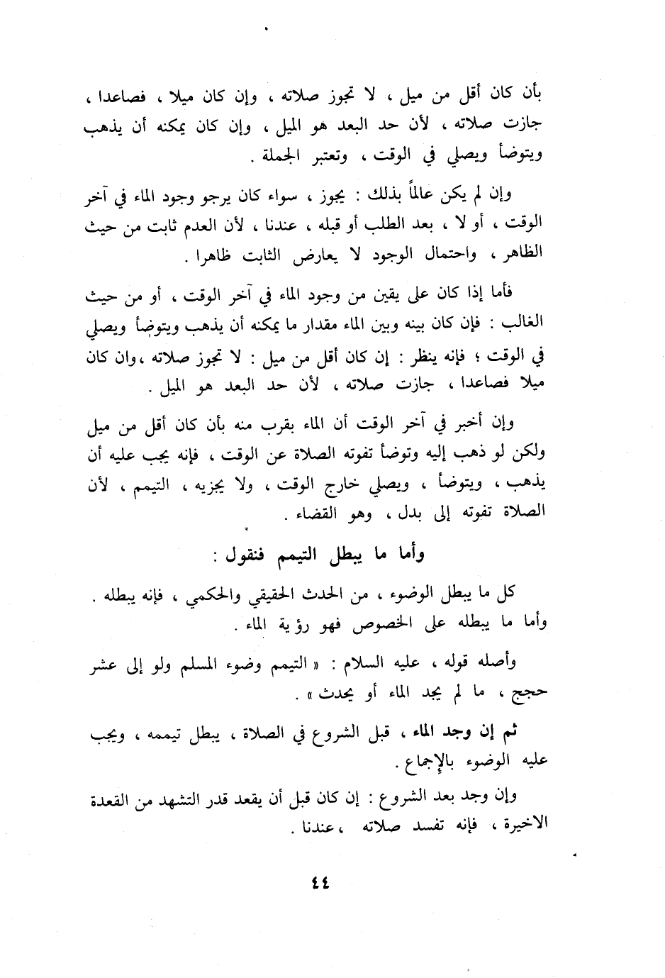وَأما مَا يُبطلهُ على الْخُصُوص فَهُوَ رُؤْيَة المَاء