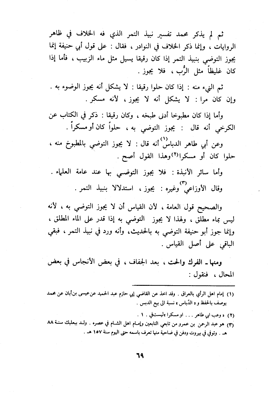 ثمَّ لم يذكر مُحَمَّد تَفْسِير نَبِيذ التَّمْر الَّذِي فِيهِ الْخلاف فِي ظَاهر الرِّوَايَات وَإِنَّمَا ذكر الْخلاف فِي النَّوَادِر فَقَالَ على قَول أبي حنيفَة إِنَّمَا يجوز التوضي بنبيذ التَّمْر إِذا كَانَ رَقِيقا يسيل مثل مَاء الزَّبِيب فَأَما إِذا كَانَ غليظا مثل الرب فَلَا يجوز