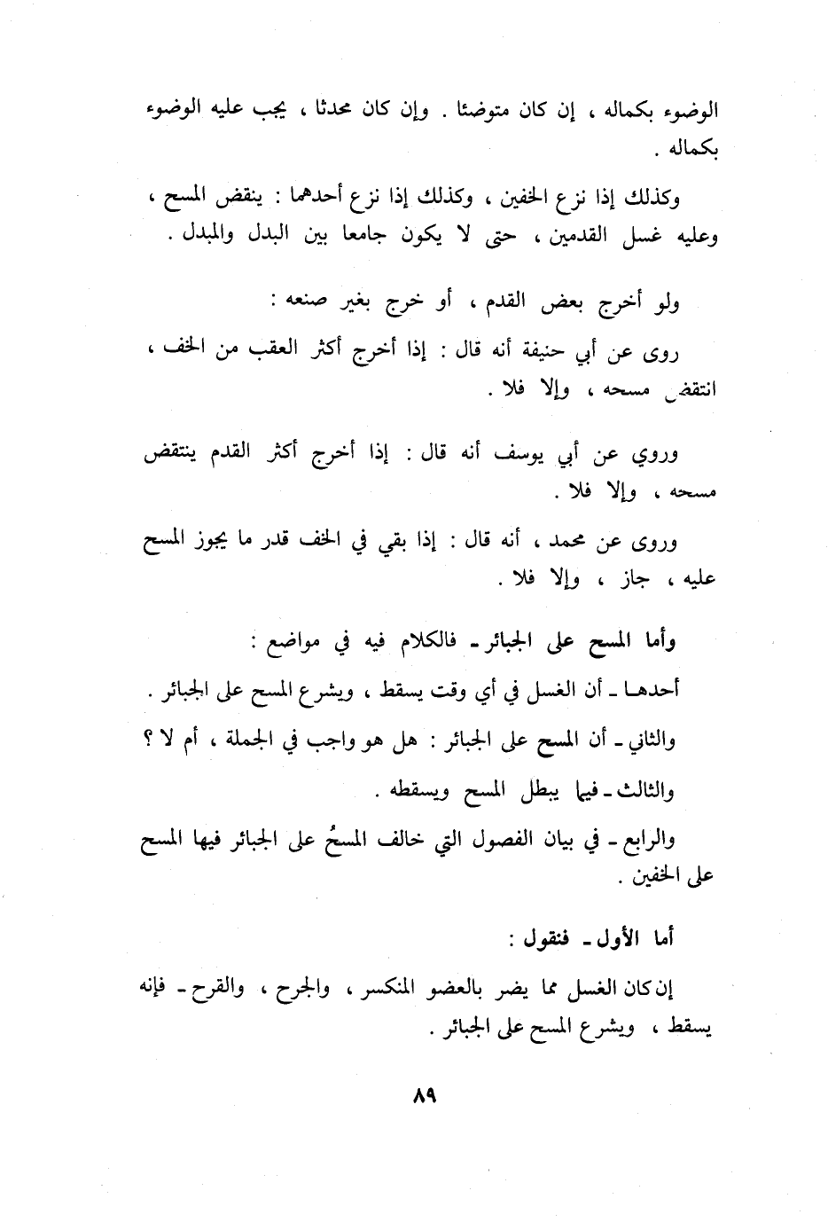 أما الأول فَنَقُول إِن كَانَ الْغسْل مِمَّا يضر بالعضو المنكسر وَالْجرْح والقرح فَإِنَّهُ يسْقط ويشرع الْمسْح على الجبائر