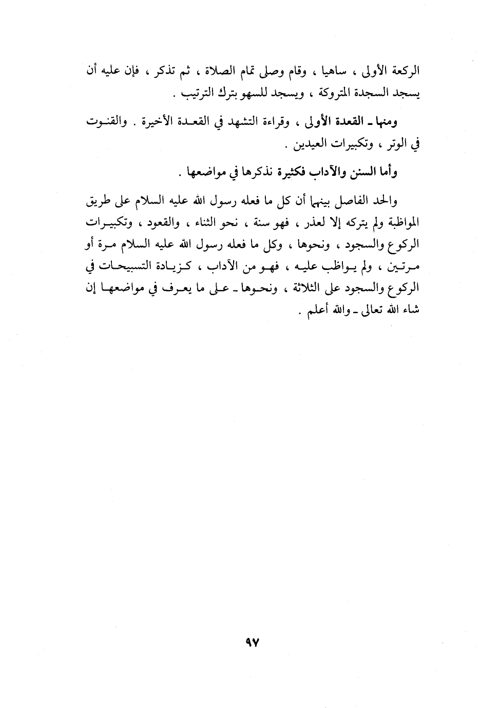 وَمِنْهَا الْقعدَة الأولى وَقِرَاءَة التَّشَهُّد فِي الْقعدَة الْأَخِيرَة