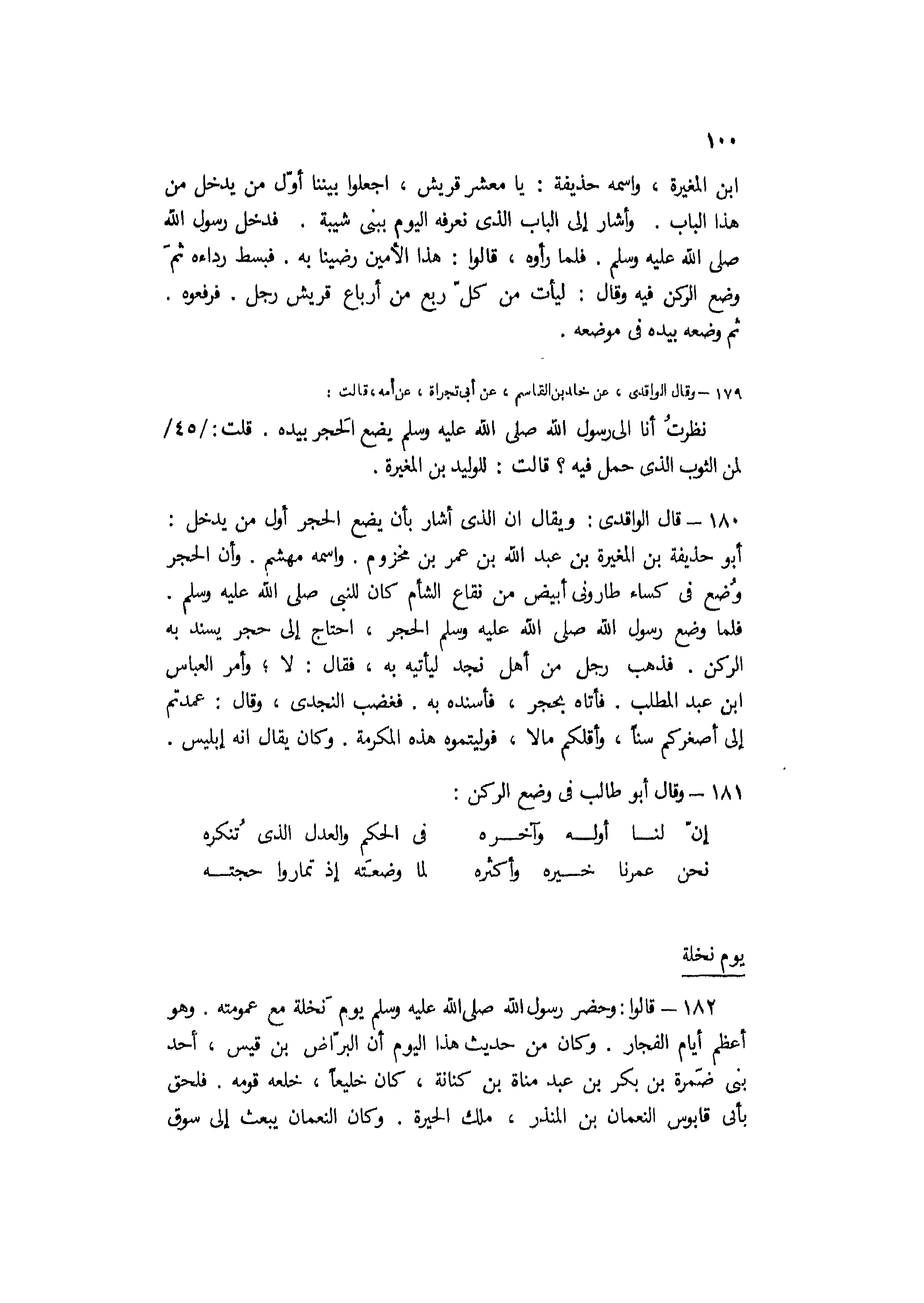 180- قال الواقدي: ويقال إن الذي أشار بأن يضع الحجر أول من يدخل: