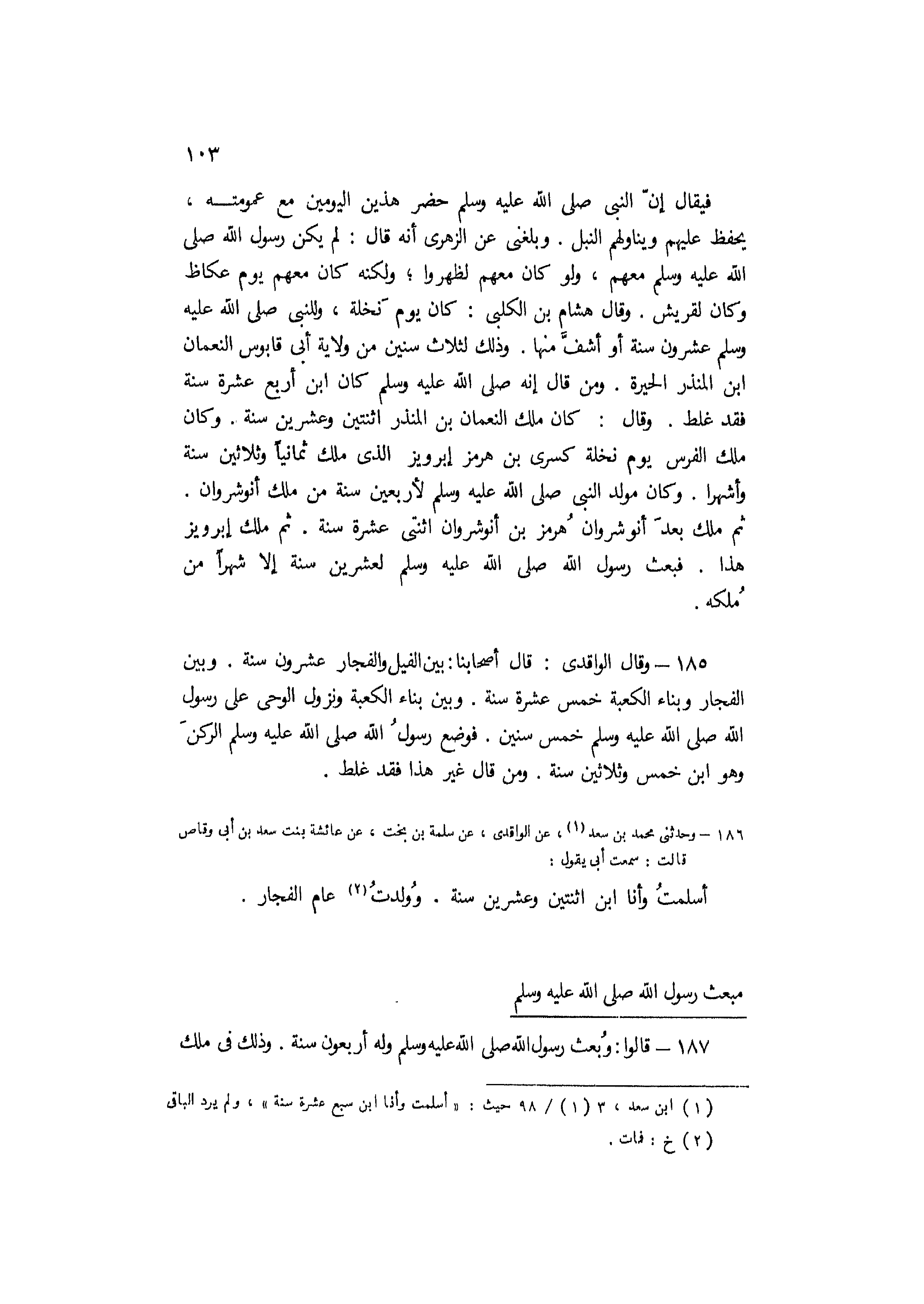 187- قَالُوا: وبعث رَسُول اللَّه صَلَّى اللَّه عَلَيْهِ وَسَلَّمَ وله أربعون سنة. وذلك في ملك