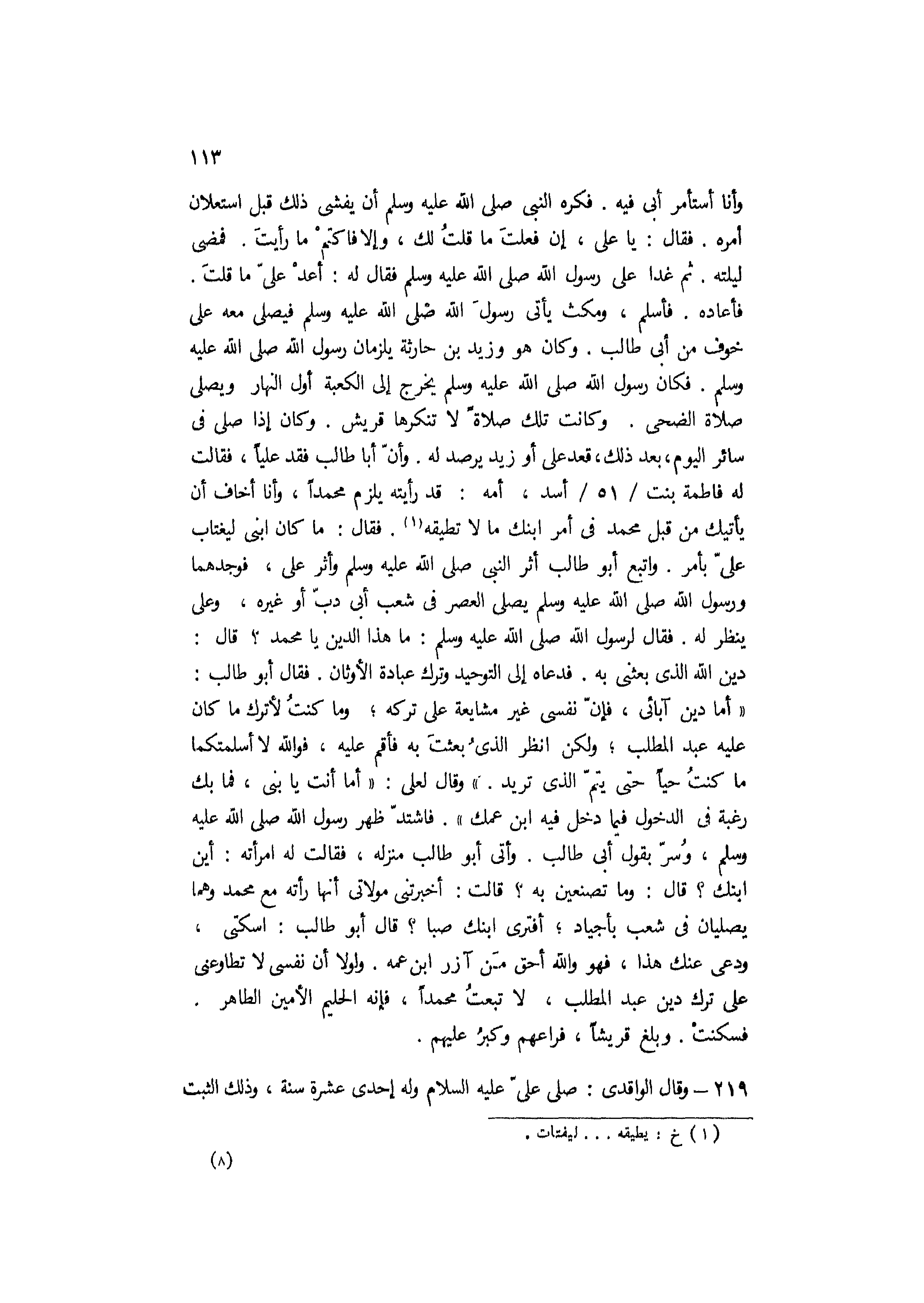 219- وقال الواقدي: صلى علي عليه السلام وله إحدى عشرة سنة، وذلك الثبت