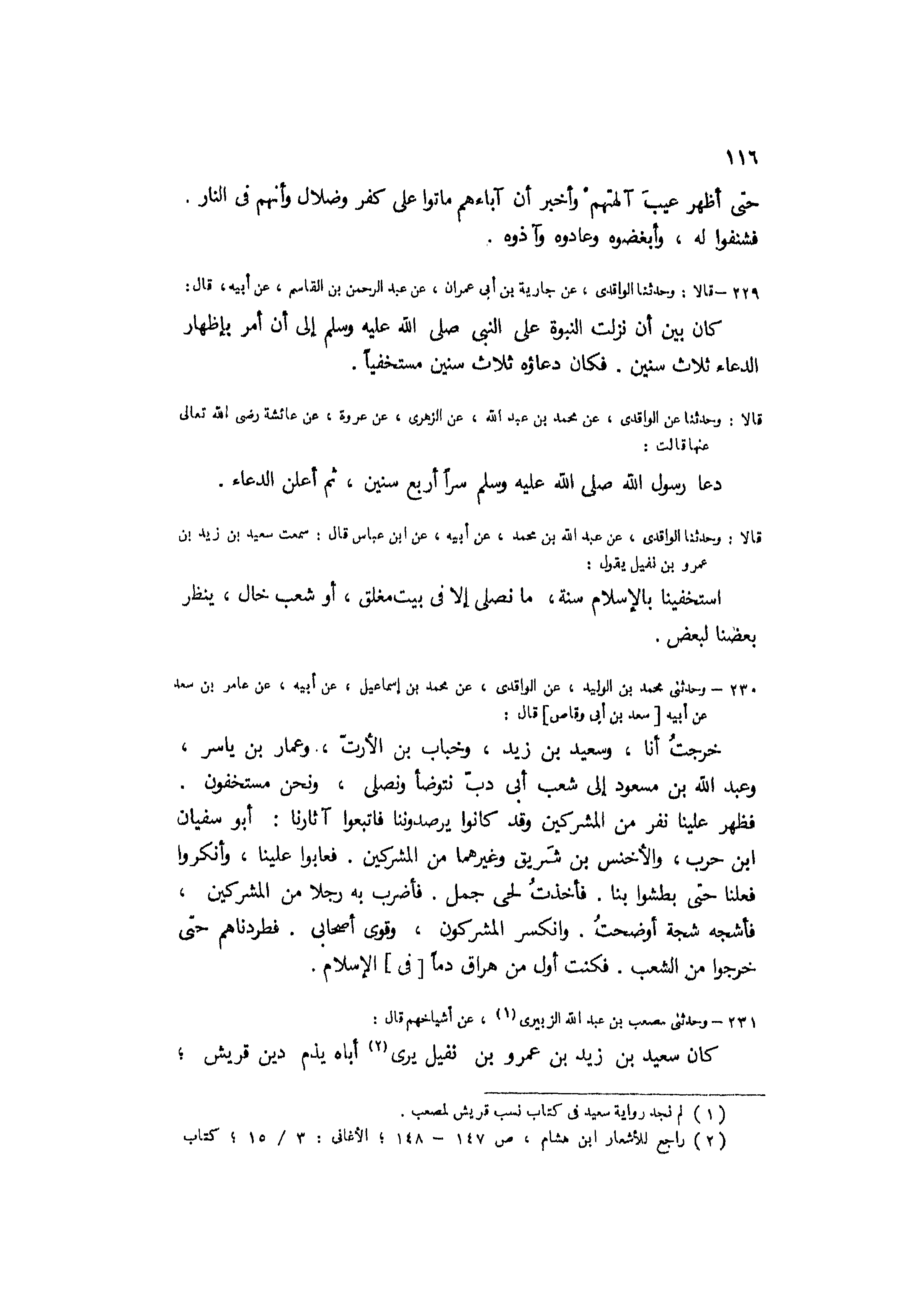 قَالا: وَحَدَّثَنَا الْوَاقِدِيُّ، عَنْ عَبْدِ اللَّهِ بْنِ مُحَمَّدٍ، عَنْ أَبِيهِ، عَنِ ابْنِ عَبَّاسٍ قَالَ: سَمِعْتُ سَعِيدَ بْنَ زَيْدِ بْنِ عَمْرِو بْنِ نُفَيْلٍ يَقُولُ: