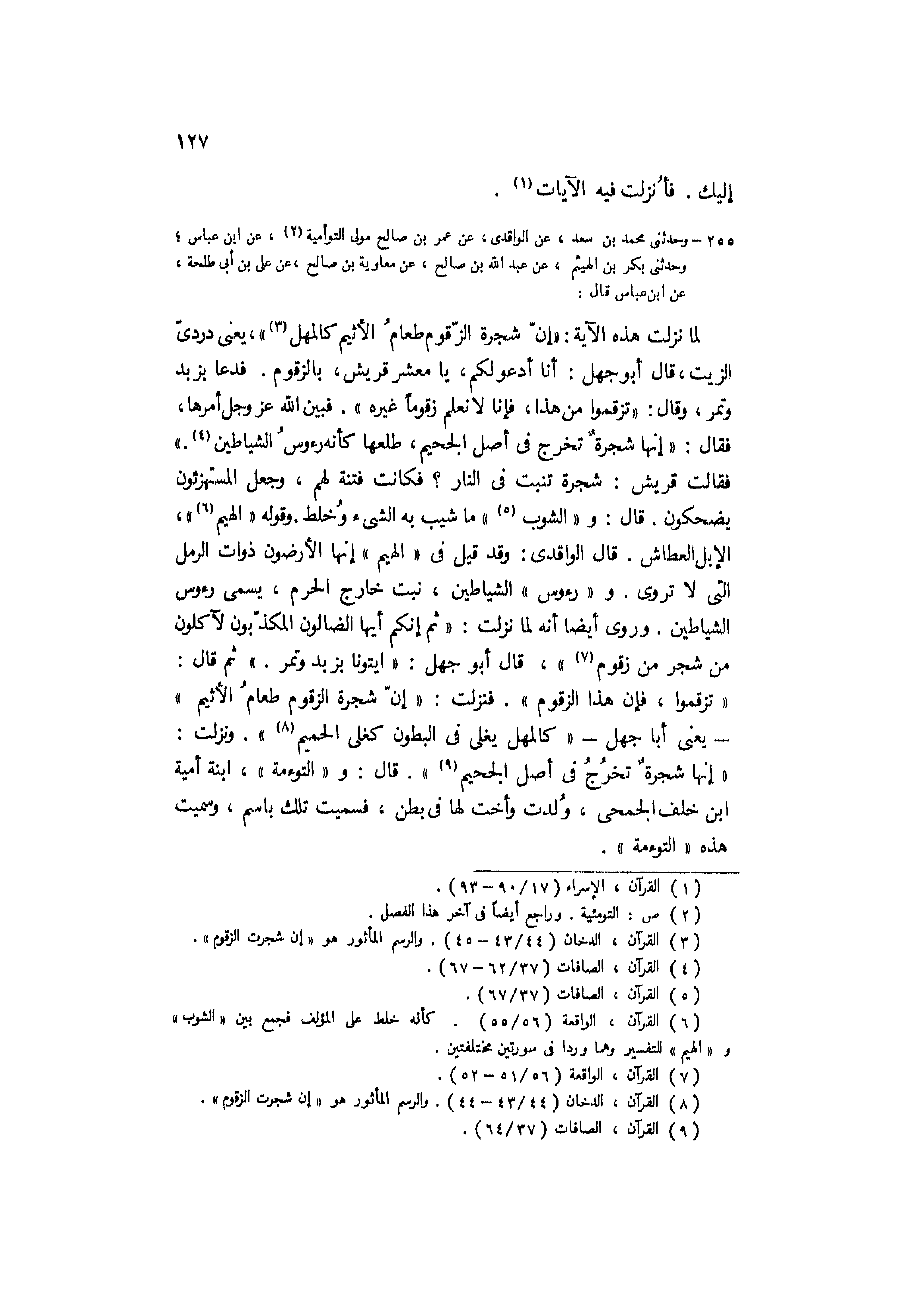 [3] القرآن، الدخان (44/ 43- 45) . والرسم المأثور هو «إن شجرت الزقوم» .