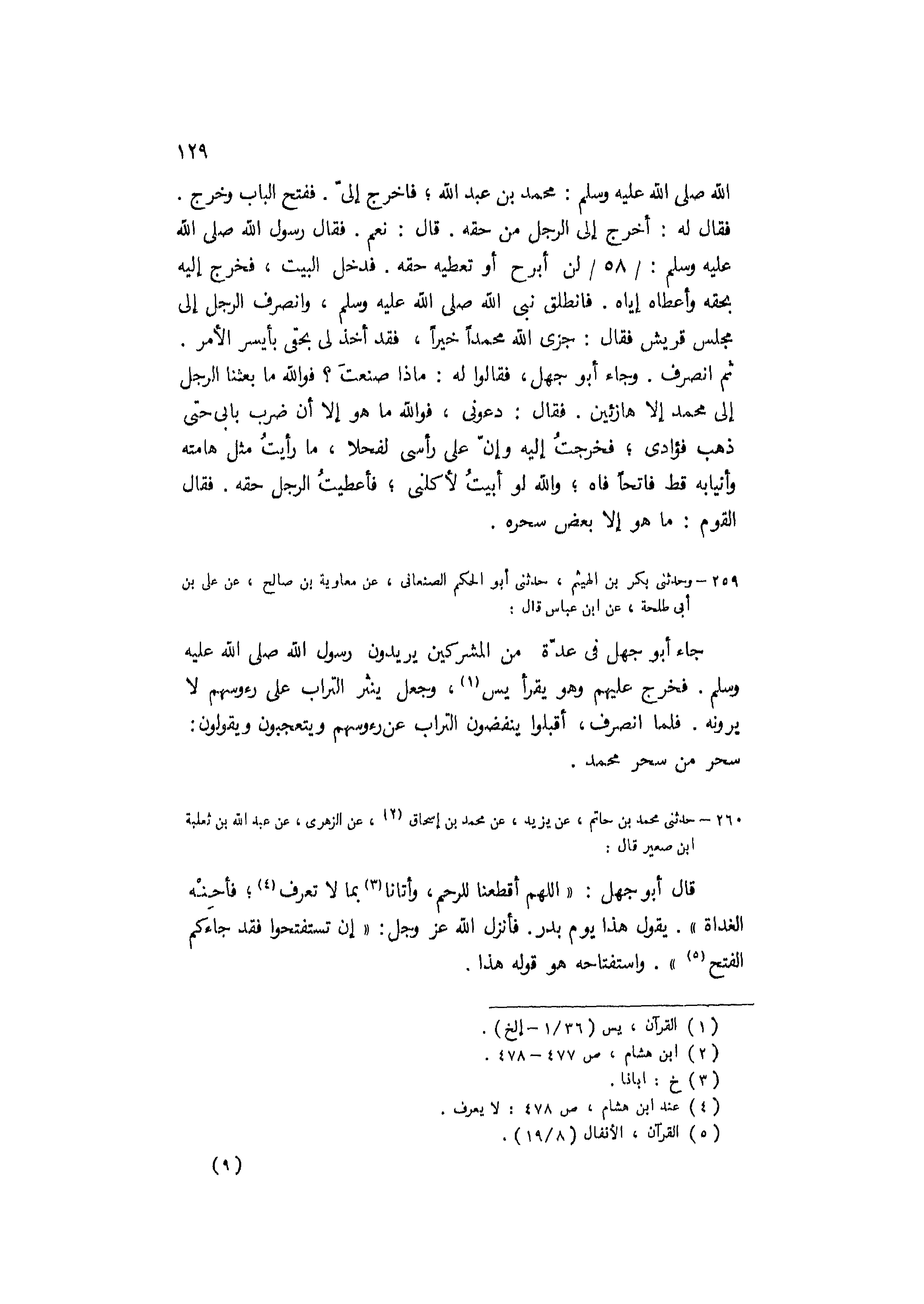 الله صلى الله عليه وسلم: محمد بن عبد الله، فاخرج إلى. ففتح الباب وخرج.