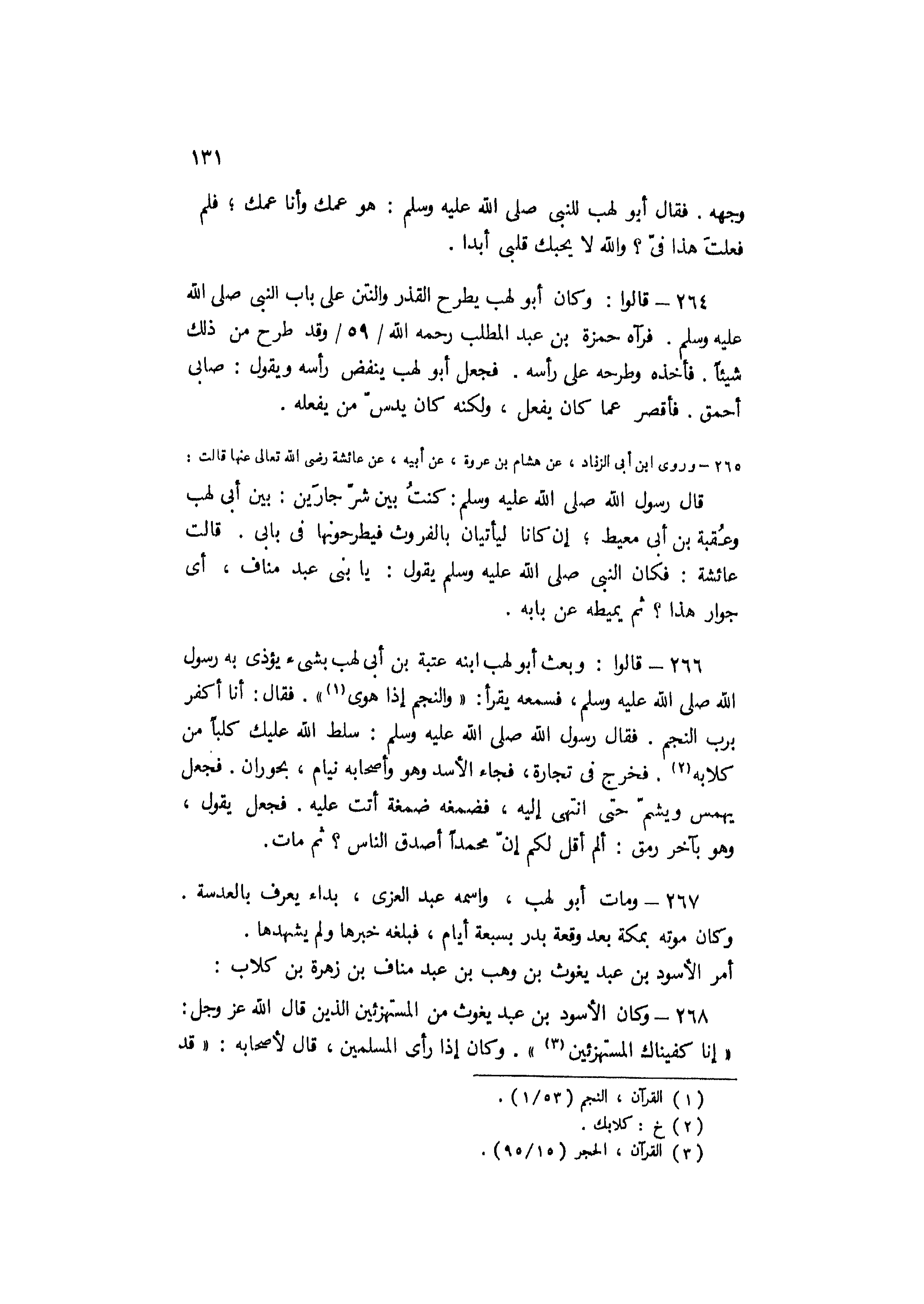 267- ومات أبو لهب، واسمه عبد العزى، بداء يعرف بالعدسة.