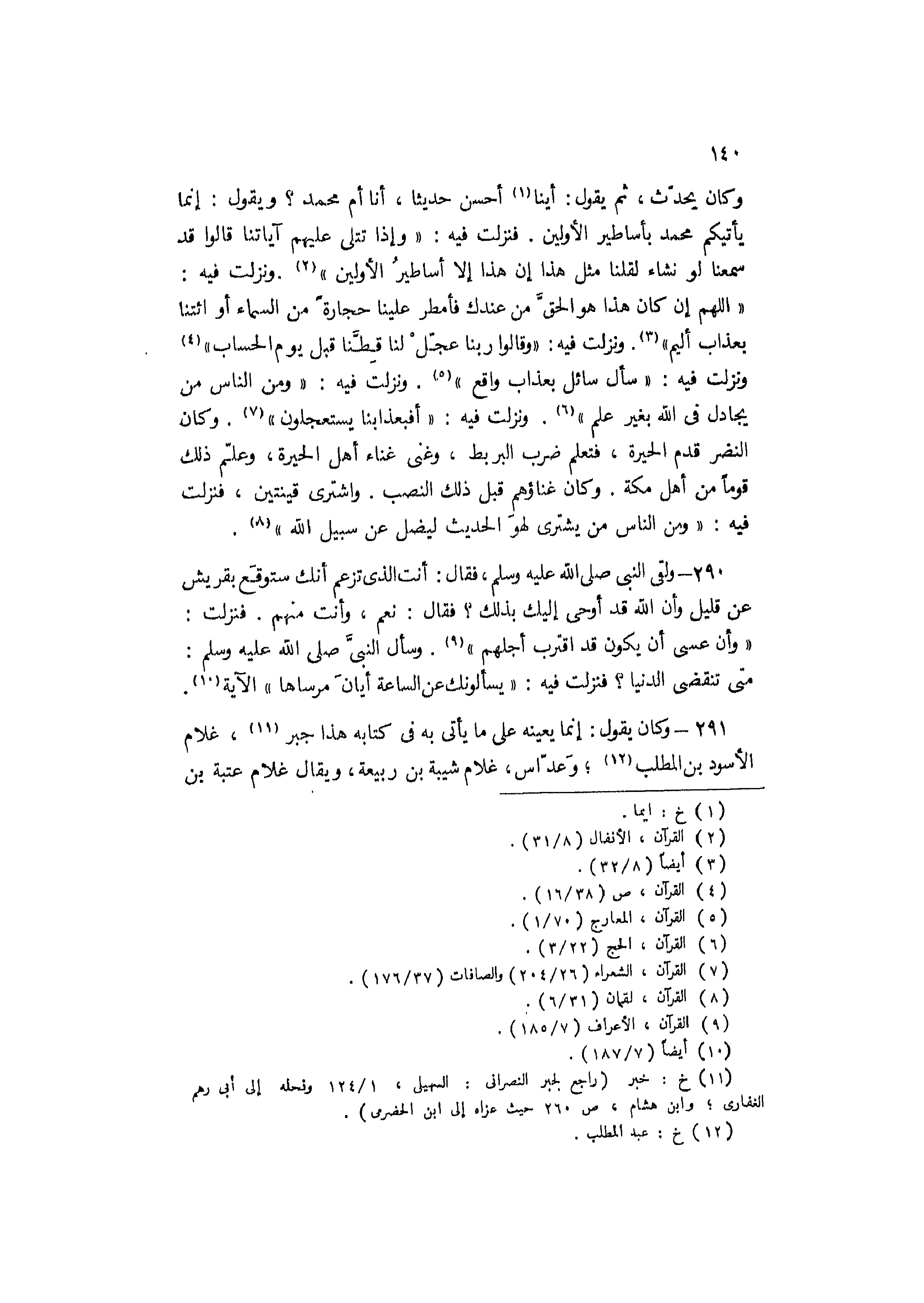 291- وكان يقول: إنما يعينه على ما يأتي به في كتابه هذا جبر [11] ، غلام الأسود بن المطلب [12] ، وعداس، غلام شيبة بن ربيعة، ويقال غلام عتبة بن