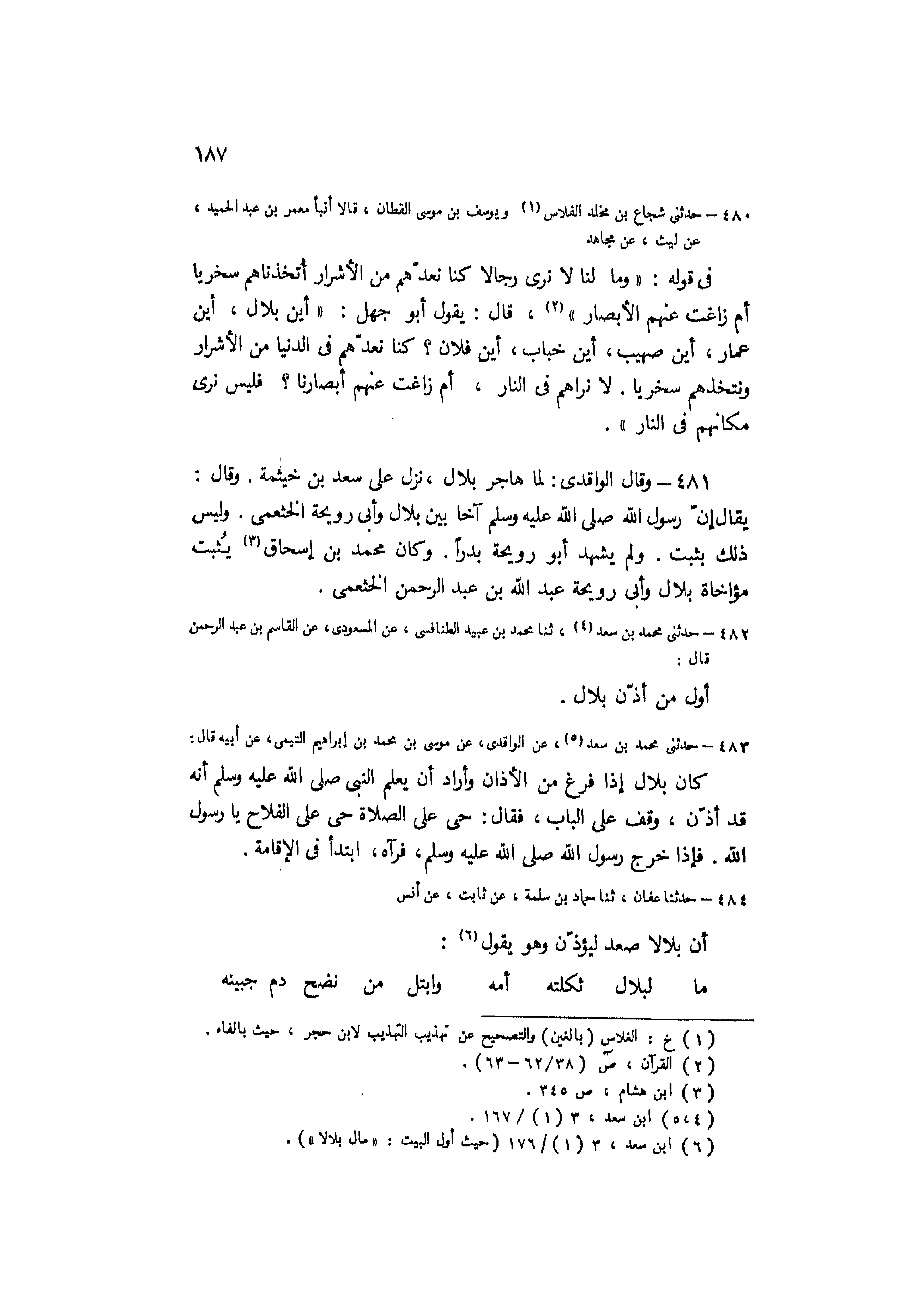 [6] ابن سعد، 3 (1) / 176 (حيث أول البيت: «مال بلالا» ) .
