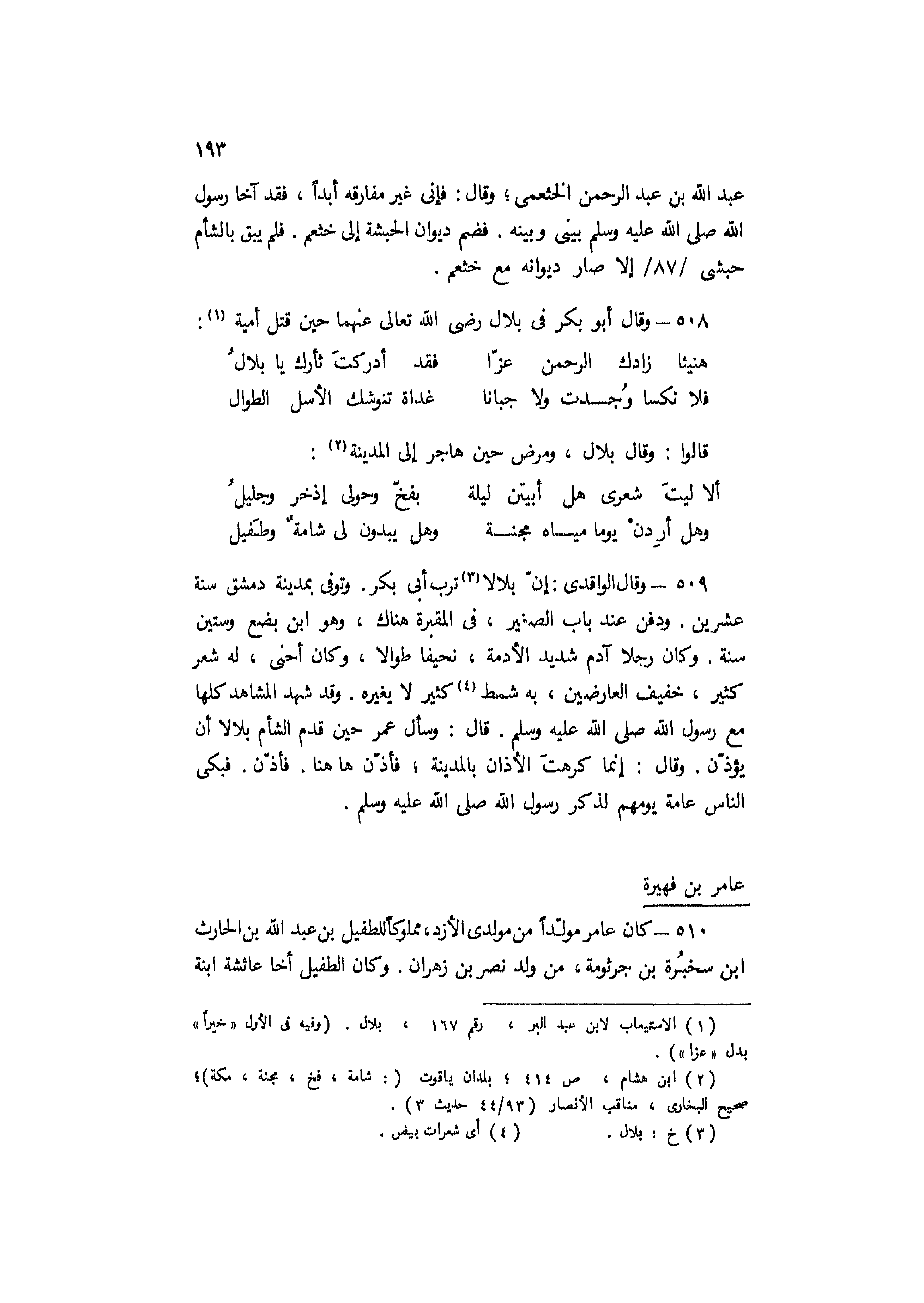 [1] الاستيعاب لابن عبد البر، رقم 167، بلال. (وفيه في الأول «خيرا» بدل «عزا» ) .