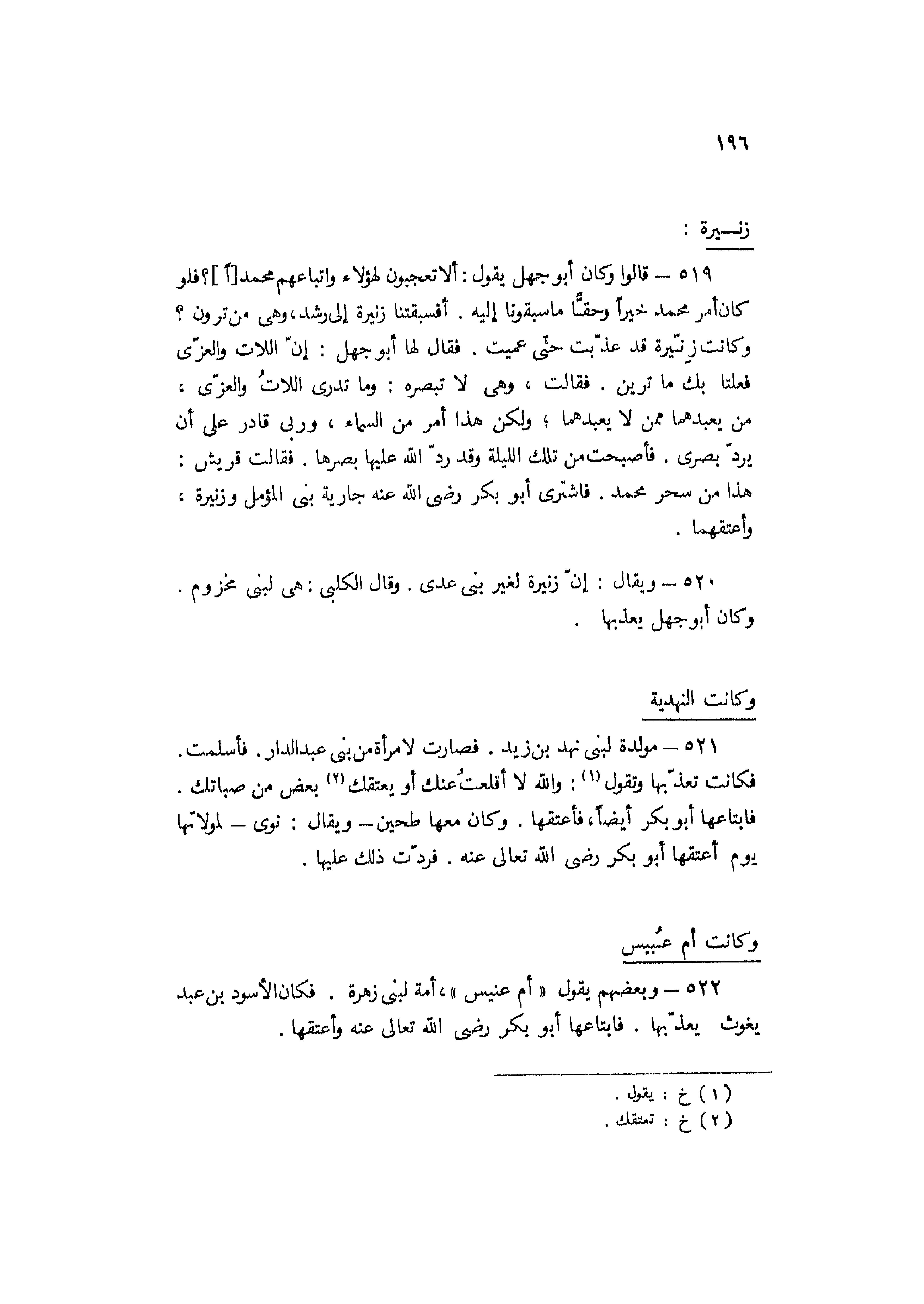 519- قالوا وكان أبو جهل يقول: ألا تعجبون لهؤلاء واتباعهم محمد (ا) ؟ فلو كان أمر محمد خيرا وحقا ما سبقونا إليه. أفسبقتنا زنيرة إلى رشد، وهي من ترون؟