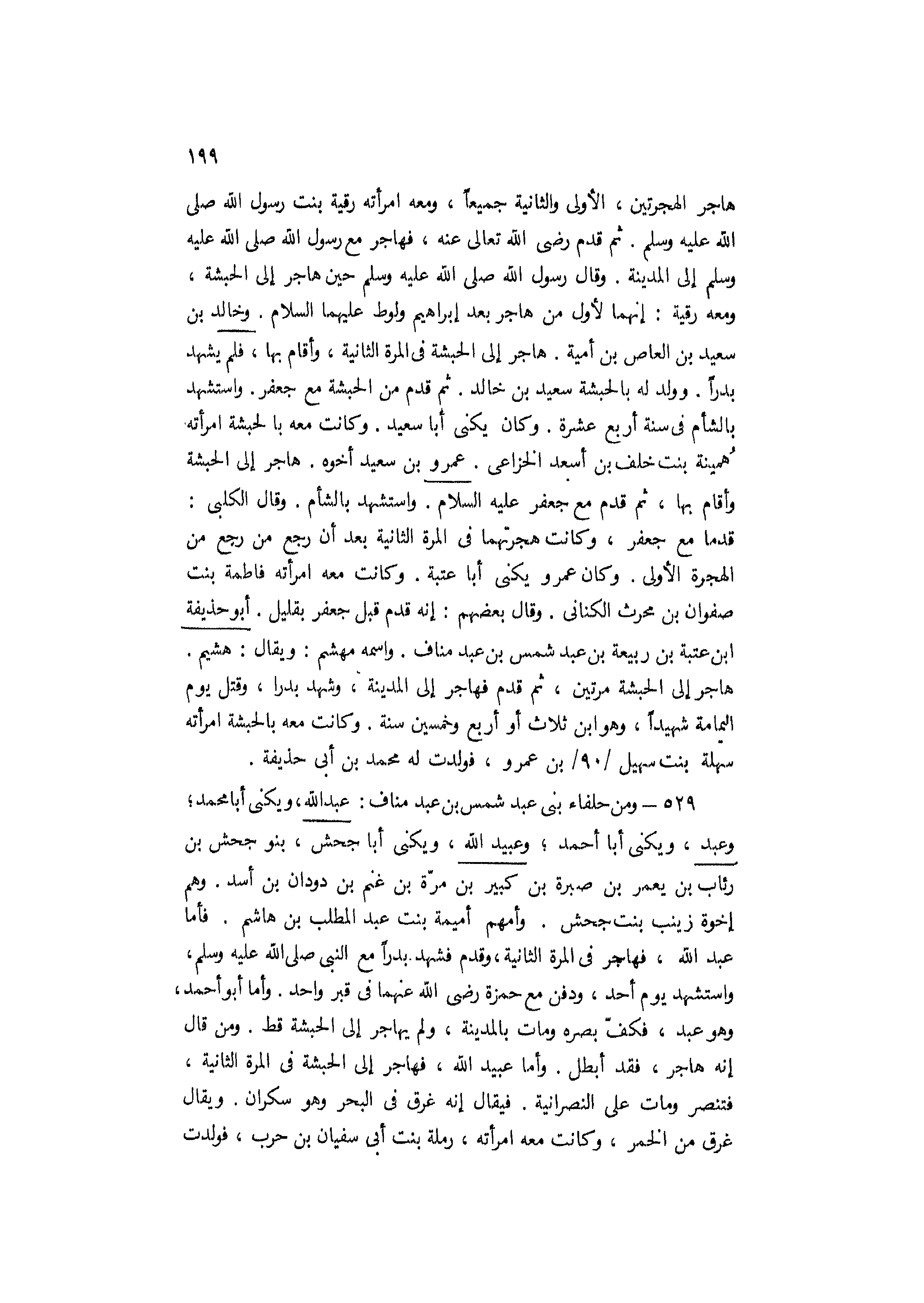 هاجر الهجرتين، الأولى والثانية جميعا، ومعه امرأته رقية بِنْت رَسُول اللَّهِ صَلَّى اللَّهُ عَلَيْهِ وسلم. ثم قدم رضي الله تعالى عنه، فهاجر مع رَسُول اللَّهِ صَلَّى اللَّهُ عَلَيْهِ وَسَلَّمَ إلى المدينة. [وَقَالَ رَسُولُ اللَّهِ صَلَّى اللَّهُ عَلَيْهِ وَسَلَّمَ حين هاجر إلى الحبشة، ومعه رقية: إنهما لأول من هاجر بعد إبراهيم ولوط عليهما السلام.]