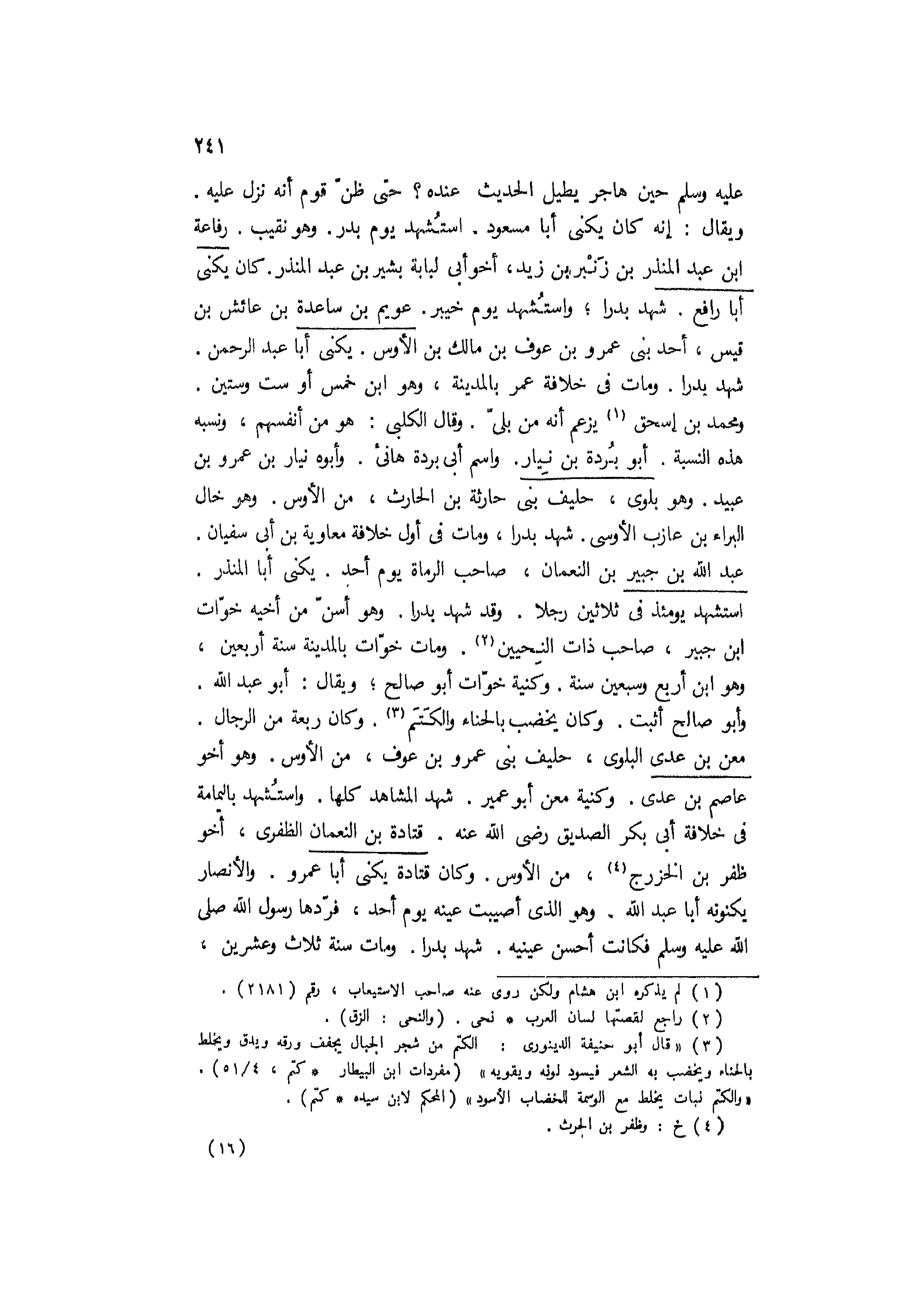 استشهد يومئذ في ثلاثين رجلا. وقد شهد بدرا. وهو أسن من أخيه خوات ابن جبير، صاحب ذات النحيين [2] . ومات خوات بالمدينة سنة أربعين، وهو ابن أربع وسبعين سنة. وكنية خوات أبو صالح، ويقال: أبو عبد الله.