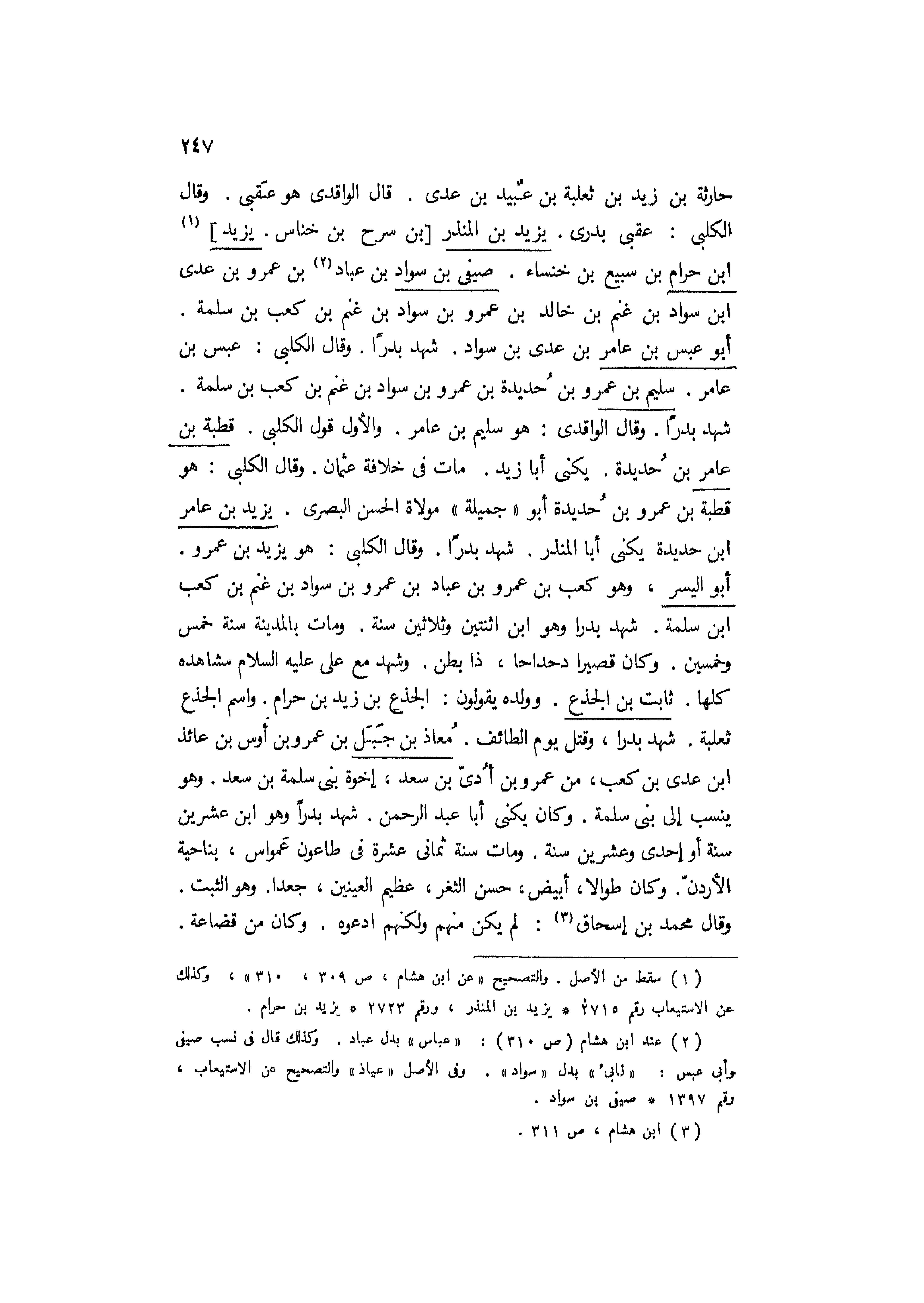 [1] سقط من الأصل. والتصحيح «عن ابن هشام، ص 309، 310» ، وكذلك عن الاستيعاب رقم 2715 يزيد بن المنذر، ورقم 2723 يزيد بن حرام.