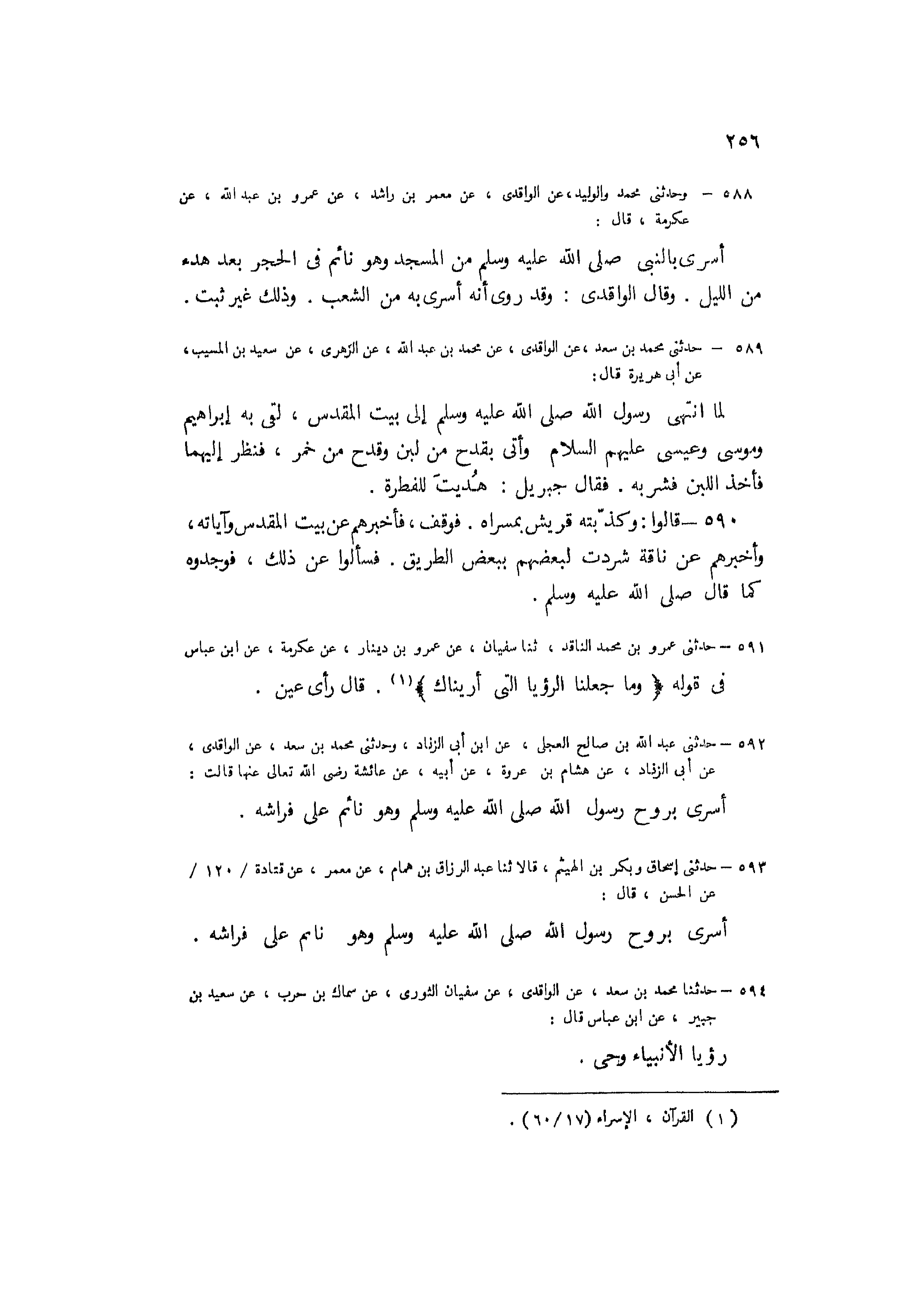 591- حَدَّثَنِي عَمْرُو بْنُ مُحَمَّدٍ النَّاقِدُ، ثنا سُفْيَانُ، عَنْ عَمْرِو بْنِ دِينَارٍ، عَنْ عِكْرِمَةَ، عَنِ ابْنِ عَبَّاسٍ فِي قَوْلِهِ (وَما جَعَلْنَا الرُّؤْيَا الَّتِي أَرَيْناكَ) [1] . قَالَ رَأْيُ عَيْنٍ.