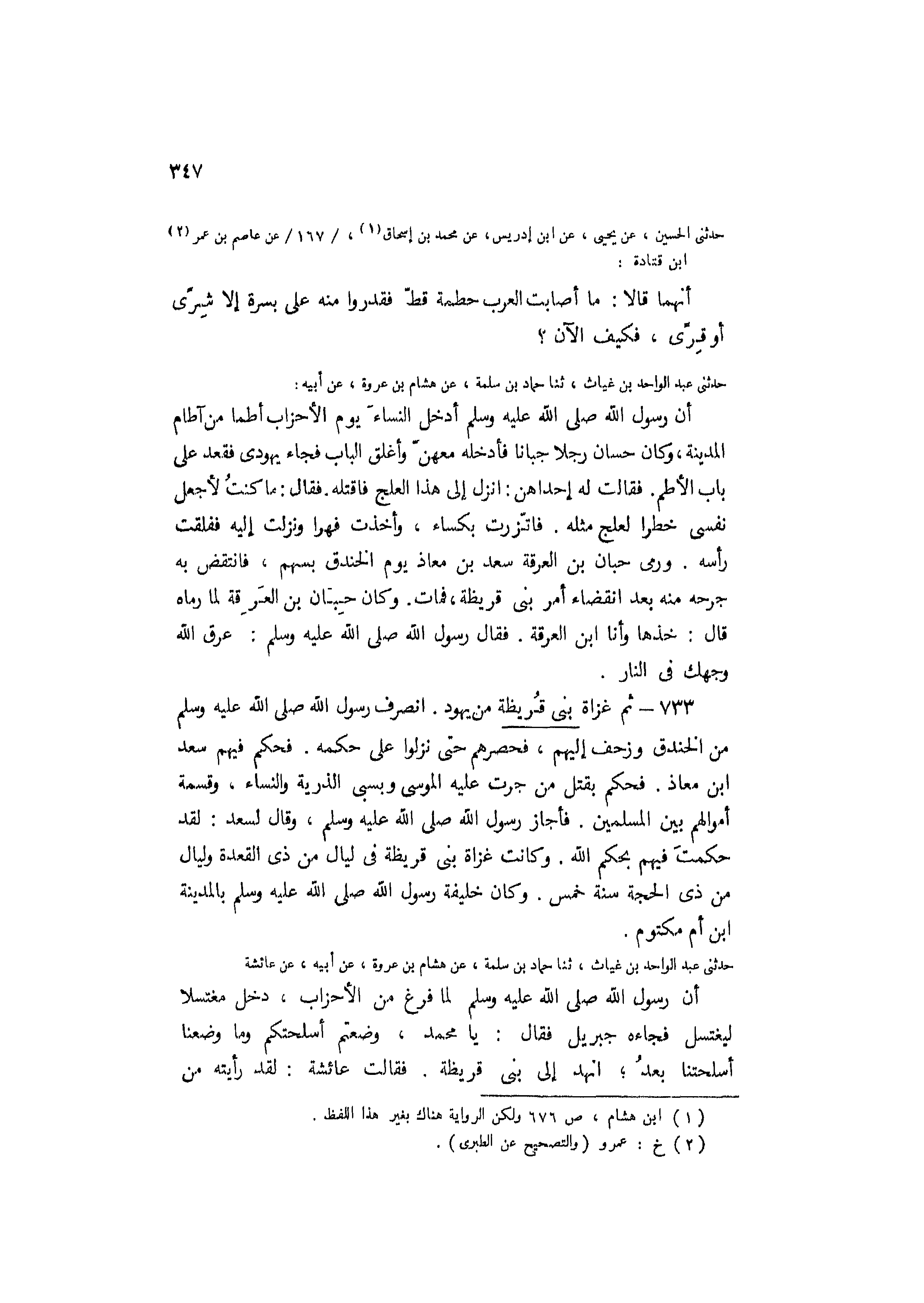 [1] ابن هشام، ص 676 ولكن الرواية هناك بغير هذا اللفظ.