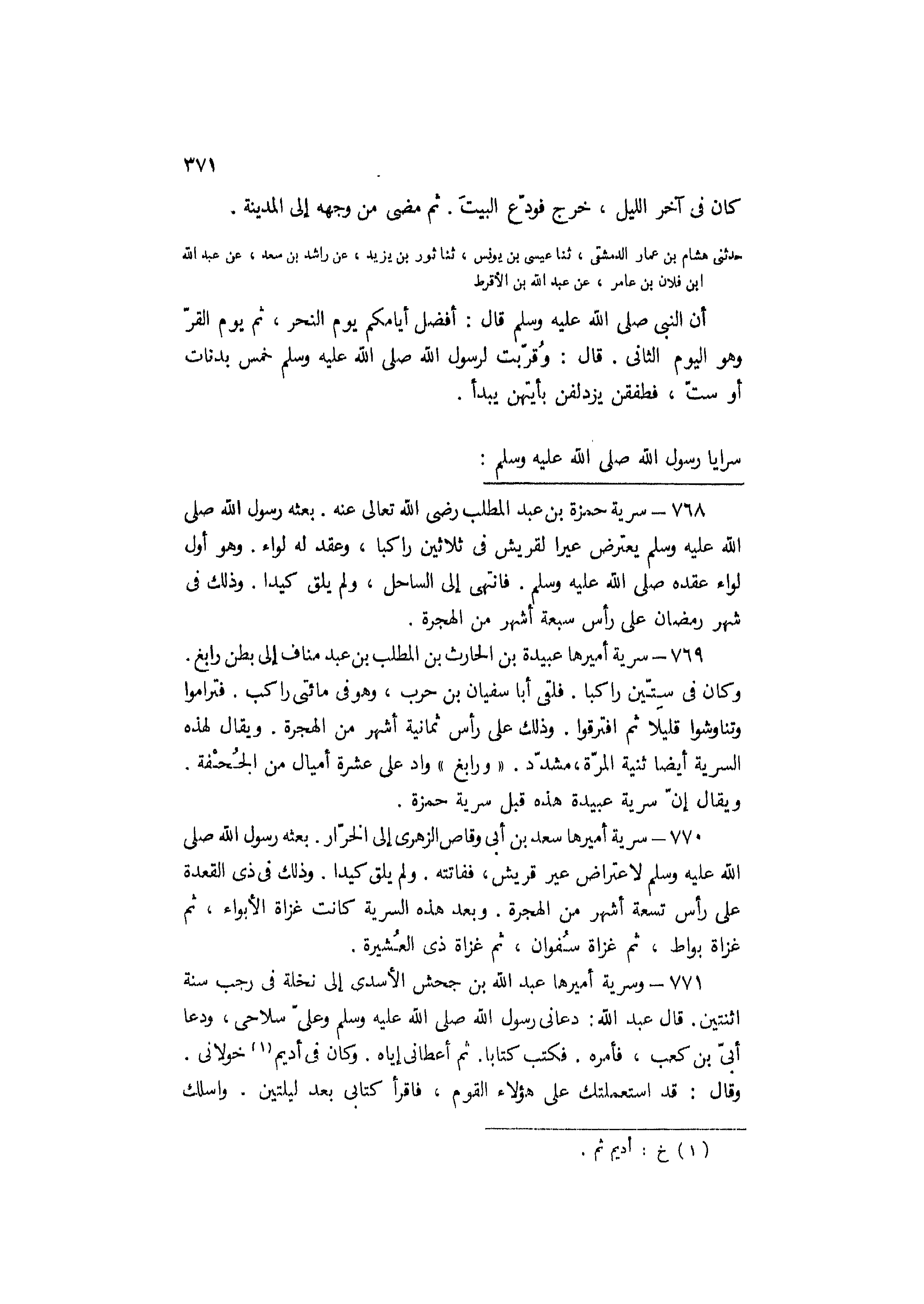 769- سرية أميرها عبيدة بْن الحارث بْن المطلب بْن عَبْد مناف إلى بطن رابغ.