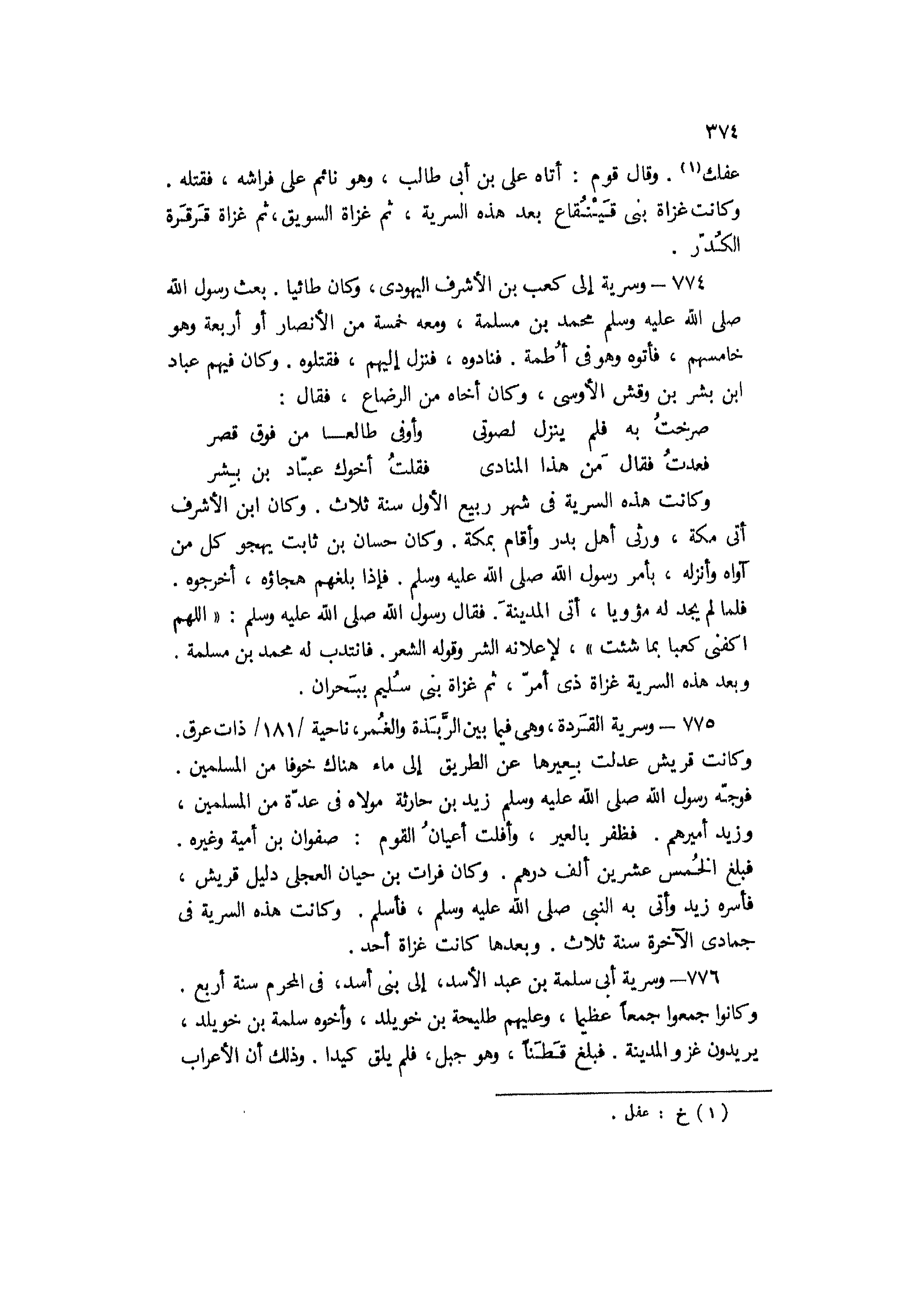 774- وسرية إلى كعب بْن الأشرف اليهودي، وكان طائيًا.