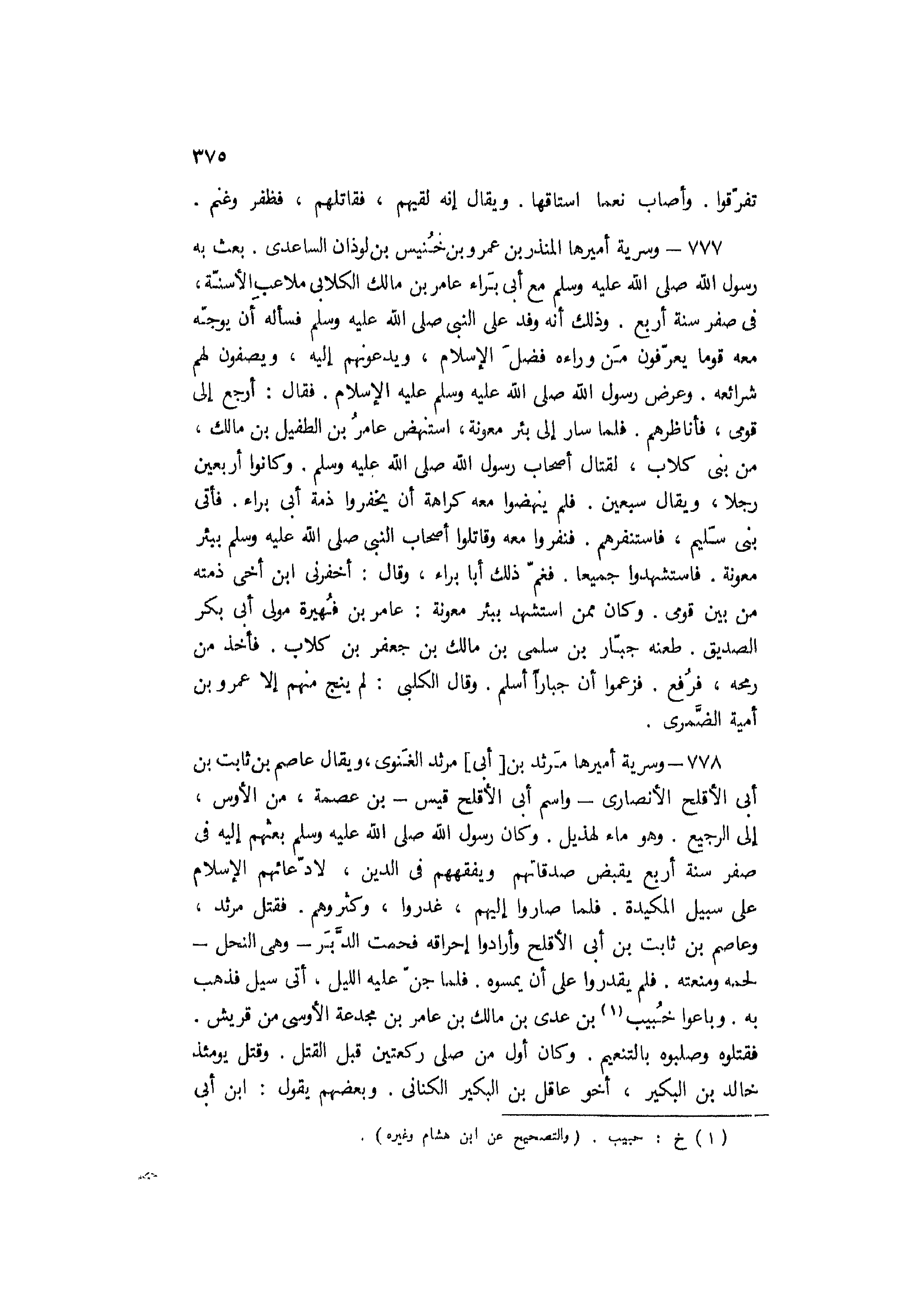 777- وسرية أميرها المنذر بْن عَمْرو بْن خُنيس بْن لوذان الساعدي.