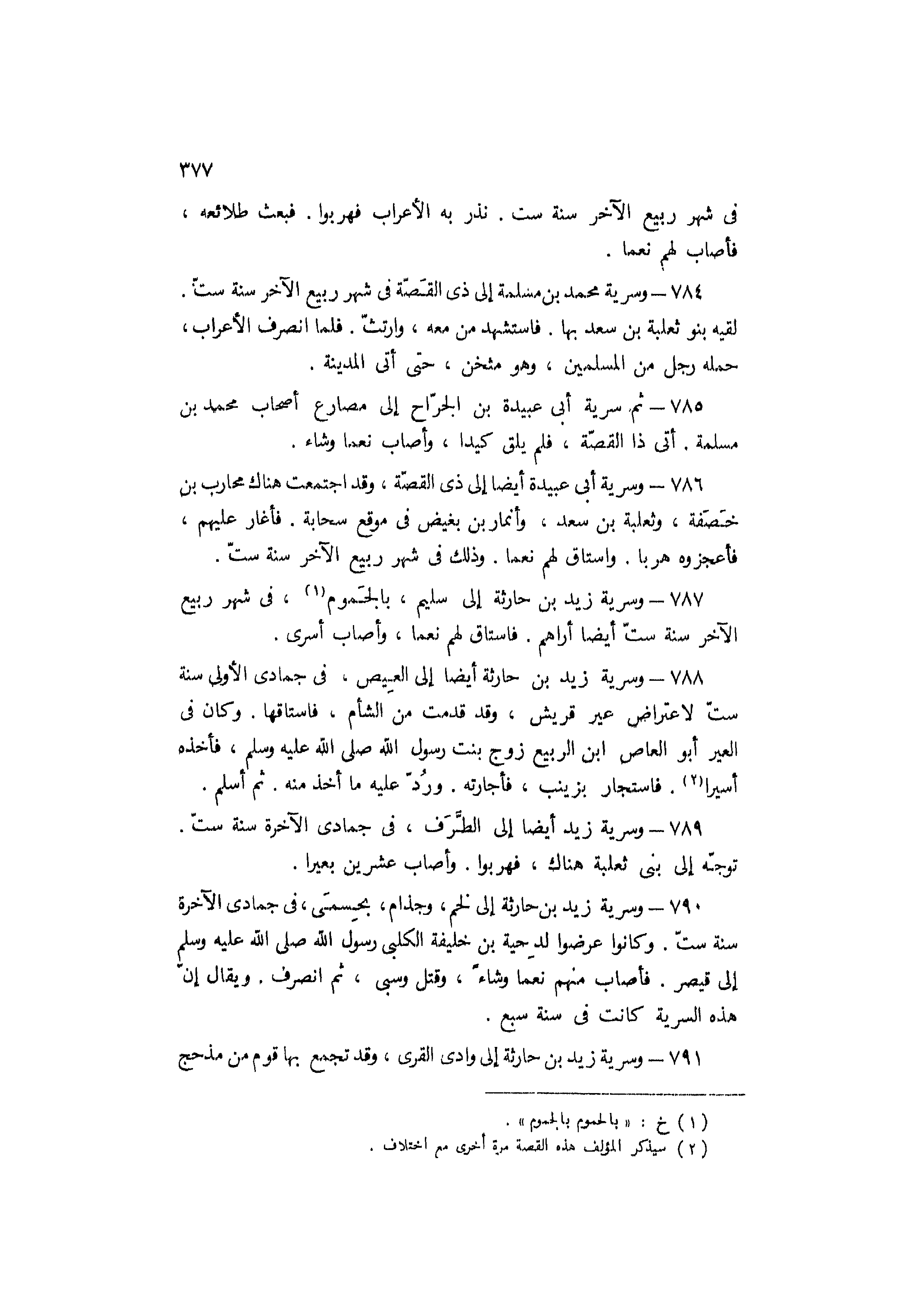 785- ثُمَّ سرية أَبِي عبيدة بْن الجراح إلى مصارع أصحاب مُحَمَّد بْن مسلمة.