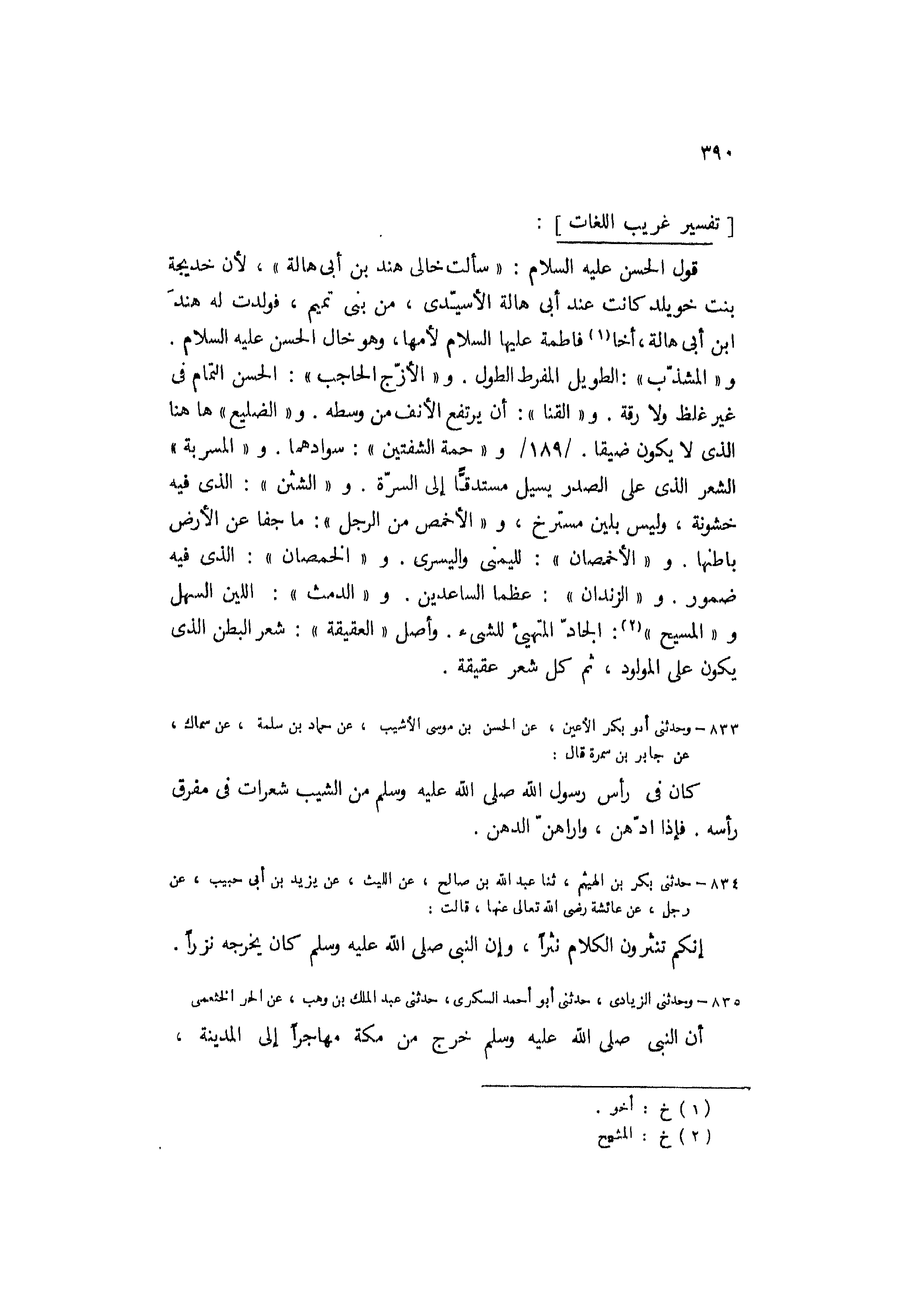 قَوْلُ الْحَسَنِ عَلَيْهِ السَّلامُ: «سَأَلْتُ خَالِي هِنْدَ بْنِ أَبِي هَالَةَ» ، لأَنَّ خَدِيجَةَ بِنْتَ خُوَيْلِدٍ كَانَتْ عِنْدَ أَبِي هَالَةَ الأُسَيِّدِيِّ، مِنْ بَنِي تميم، فولدت له هند ابن أَبِي هَالَةَ، أَخَا [1] فَاطِمَةَ عَلَيْهَا السَّلامُ لأُمِّهَا، وهو خال الحسن عليه السلام.