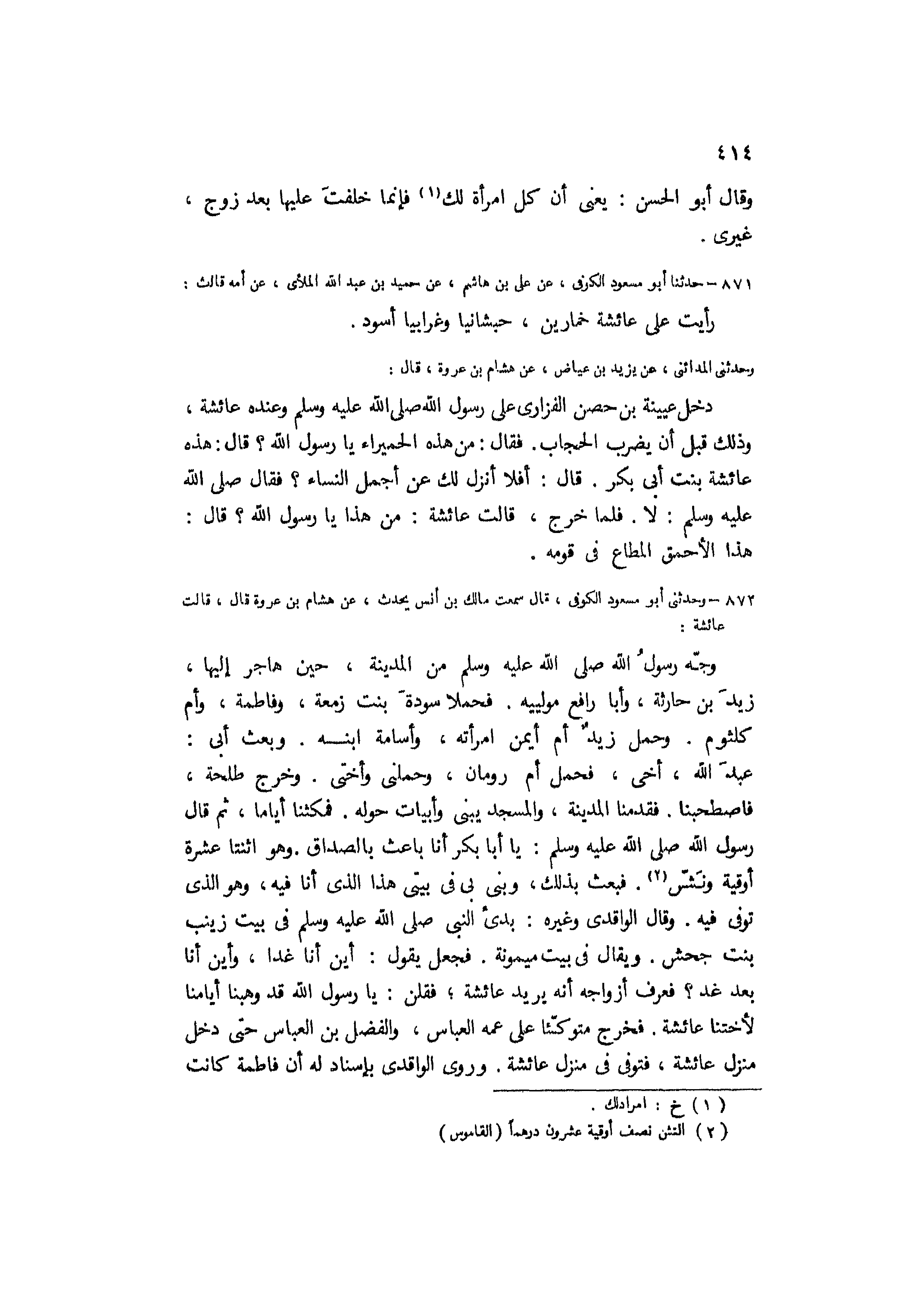 872- وَحَدَّثَنِي أَبُو مَسْعُودٍ الْكُوفِيُّ، قَالَ سَمِعْتُ مَالِكَ بْنَ أَنَسٍ يُحَدِّثُ، عَنْ هِشَامِ بْنِ عُرْوَةَ قَالَ، قَالَتْ عَائِشَةُ:
