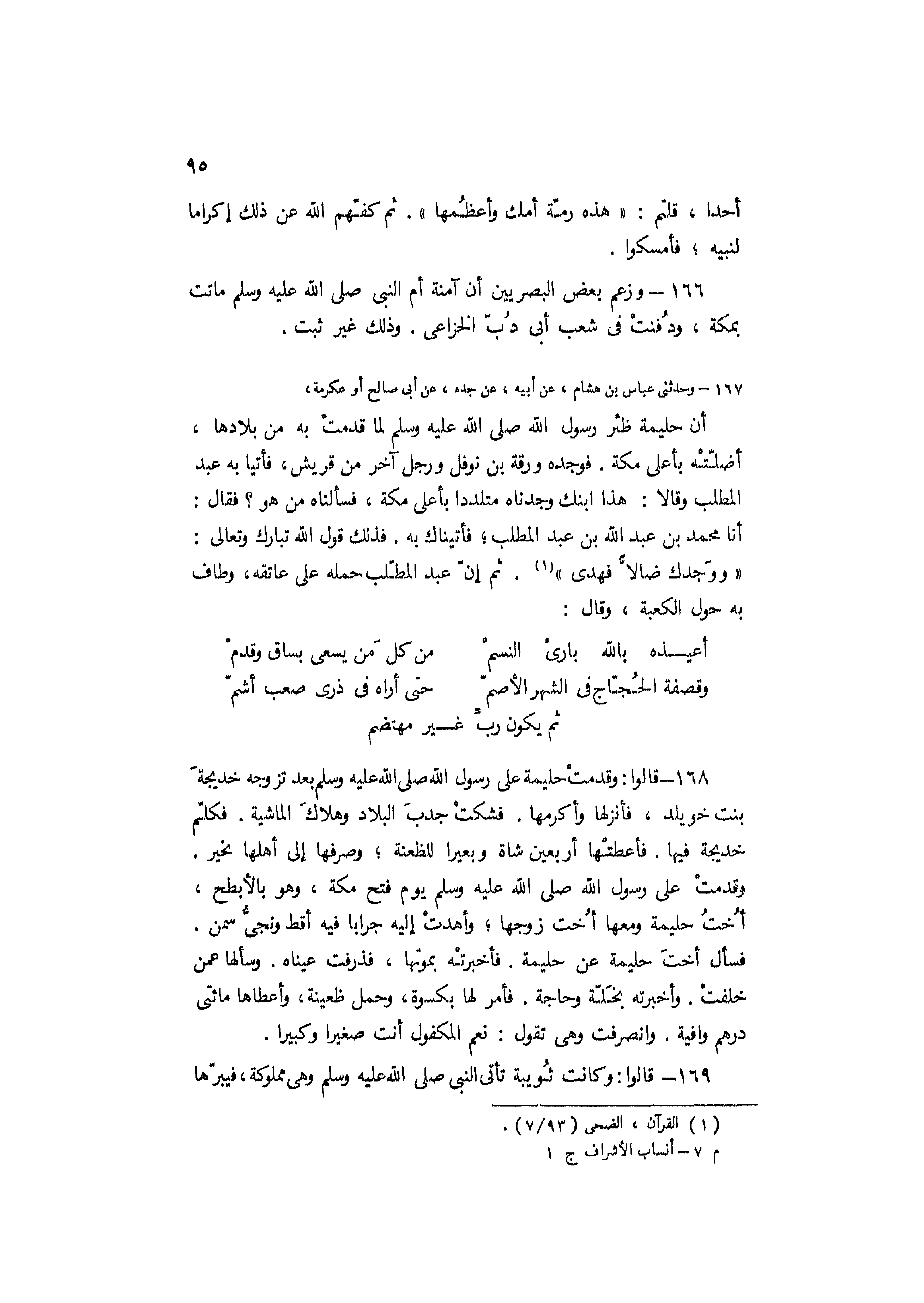 169- قالوا: وكانت ثويبة تأتي النبي صلى اللَّه عليه وسلم وهي مملوكة، فيبرّها