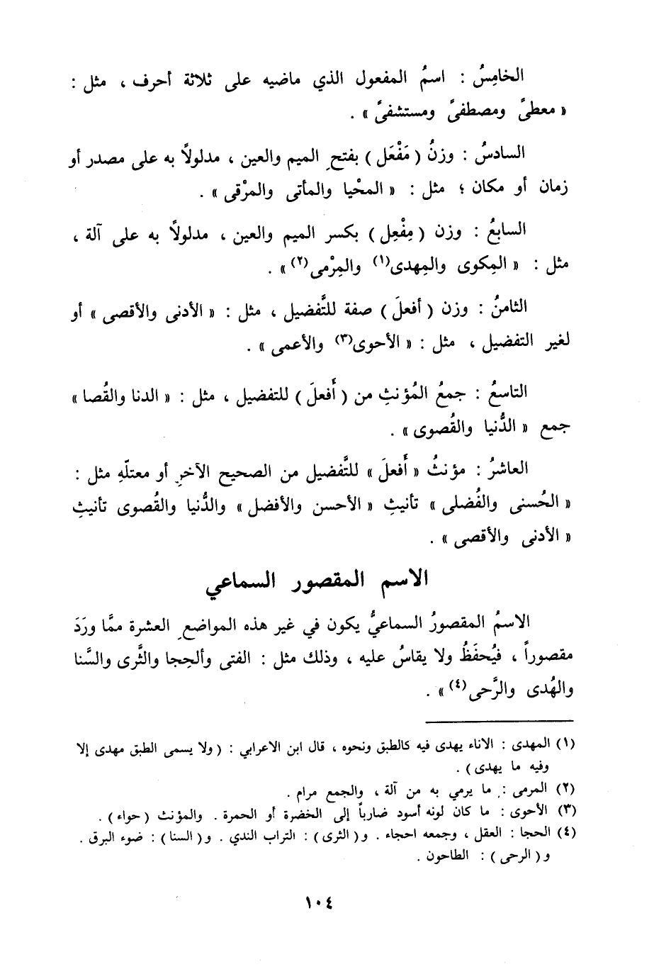 الثامنُ وزن (أفعلَ) صفة للتَّفضيل، مثل "الأدنى والأقصى" أو لغير التفضيل، مثل الأحوى والأعمى".